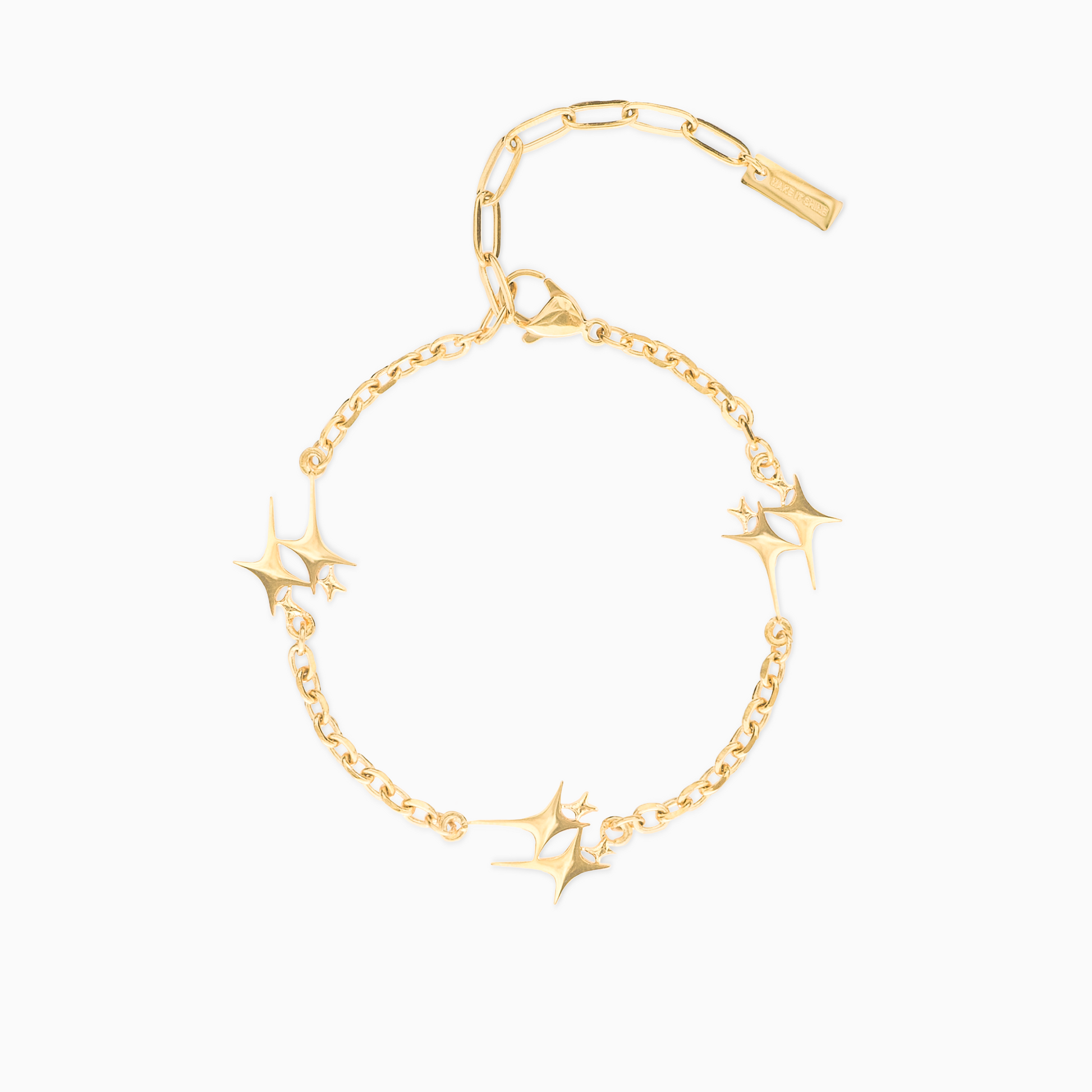 Découvrez notre bracelet Double Stars, sublimé par le double logo Make it Shine, symbole iconique de la Maison. Son fini doré et son design épuré en font une pièce intemporelle, pensée pour accompagner le quotidien sans compromis.