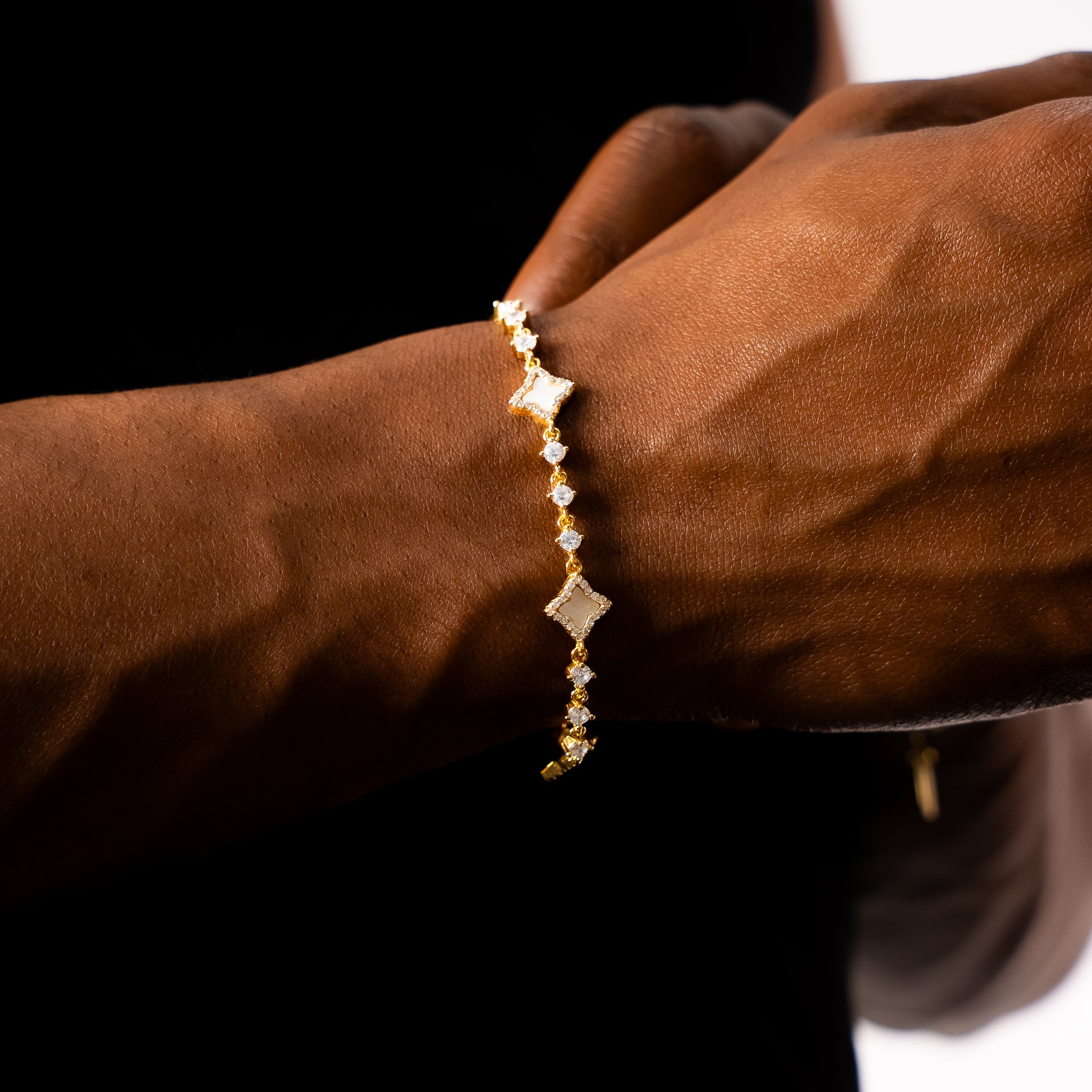 Découvrez notre Bracelet Flower Tennis, une pièce exquise qui marie l'élégance intemporelle du bracelet tennis et la délicatesse des fleurs. Chacune des fleurs, ornée d'une pierre imitation nacre et d'une épaisseur de 8 mm, ajoute une touche de charme et de sophistication à ce bracelet de 3 mm.