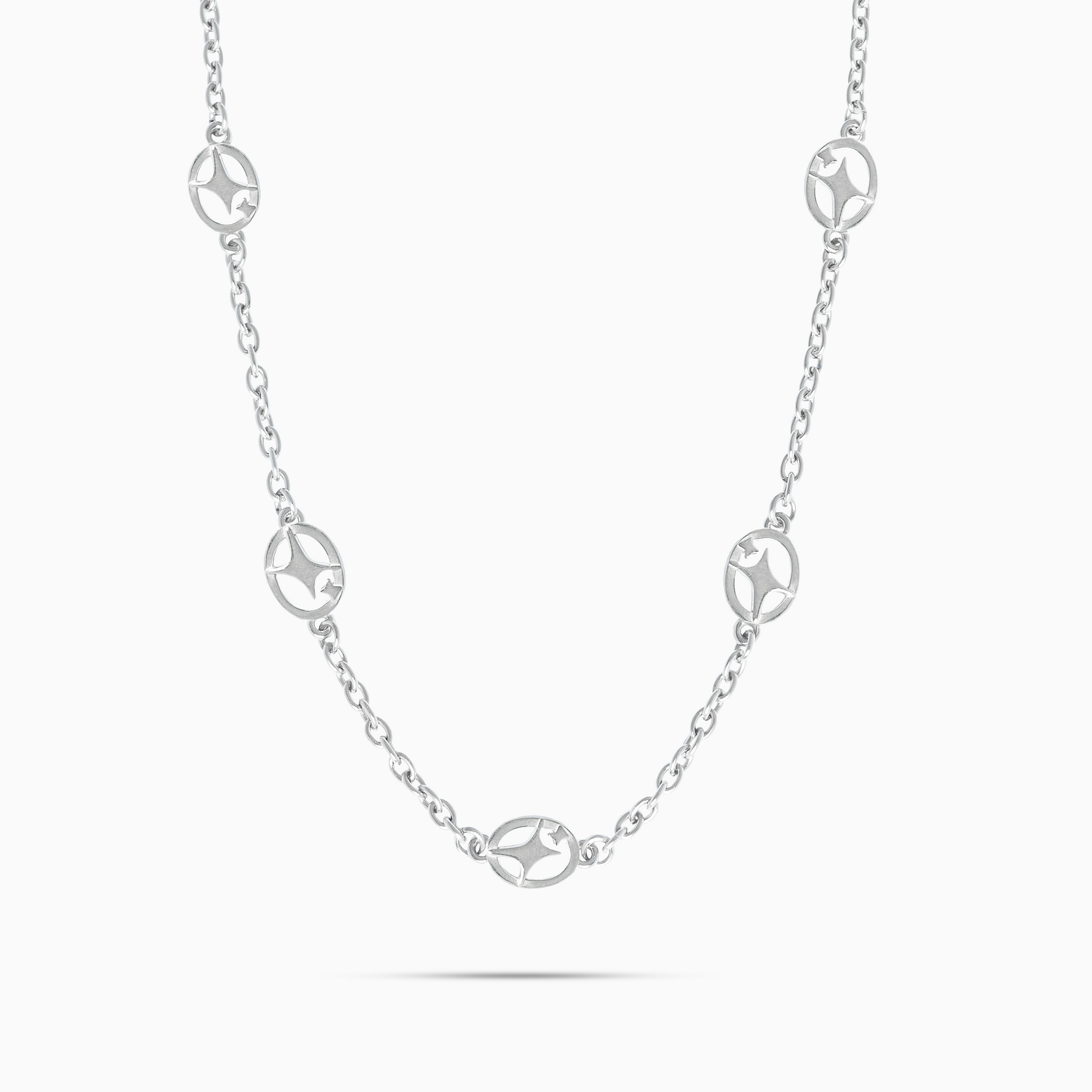 Découvrez notre Chaîne Signature, une pièce élégante qui associe modernité et sophistication. Orné de maillons raffinés, ce bracelet est agrémenté de trois motifs ovales ajourés, chacun gravé de l'étoile iconique de Make it Shine, symbole de style et de finesse. Sa chaîne câble se termine par un fermoir sécurisé et une rallonge, permettant un ajustement parfait à votre poignet.