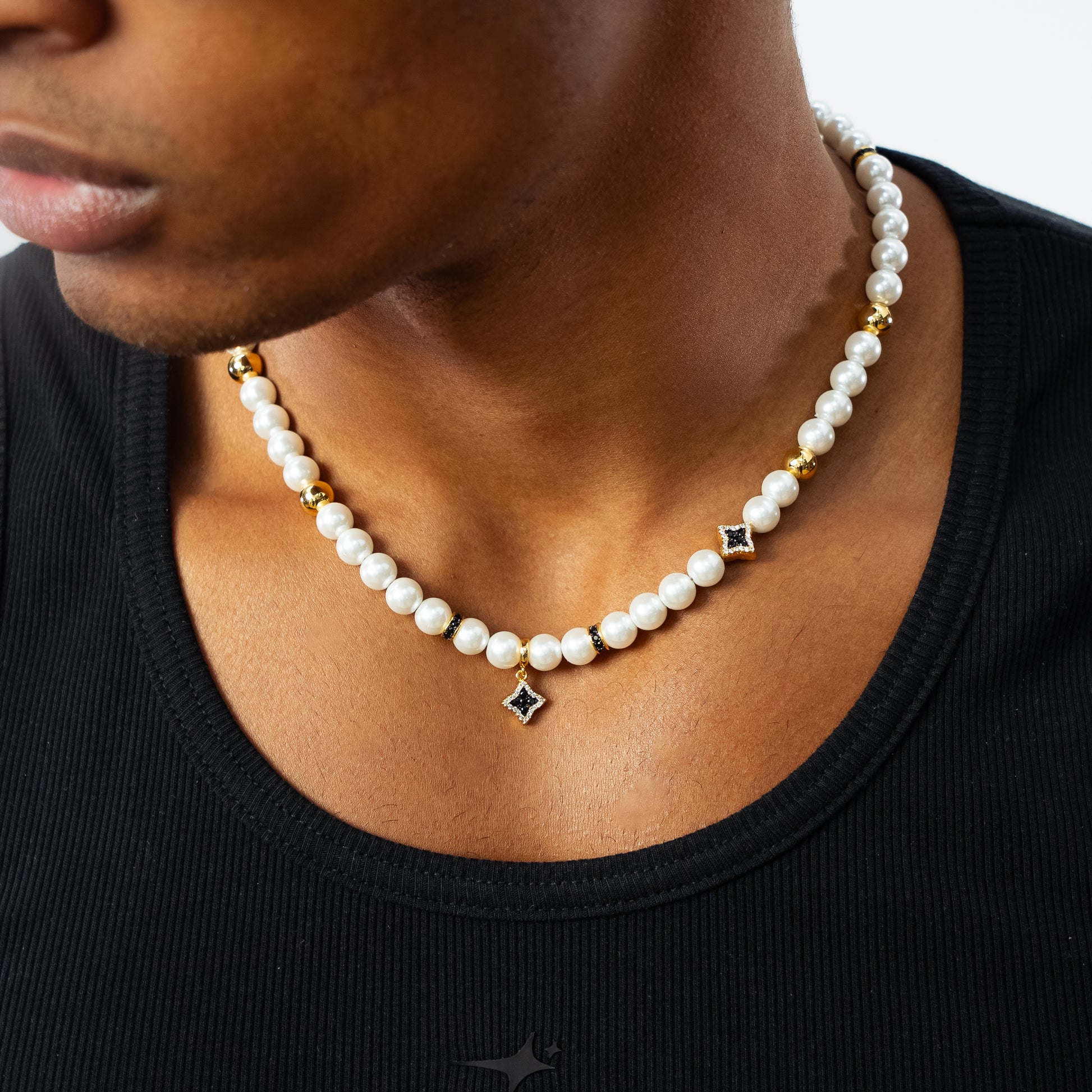 Découvrez notre chaîne Flower Pearl, une pièce raffinée qui allie la douceur des perles à l’éclat de détails floraux. Ornée de perles blanches de 8 mm, ponctuée de quelques perles dorées, cette chaîne se distingue par trois fleurs scintillantes incrustées de pierres noires. L’une d’elles, suspendue en pendentif, vient sublimer l’ensemble avec une touche aérienne et lumineuse.