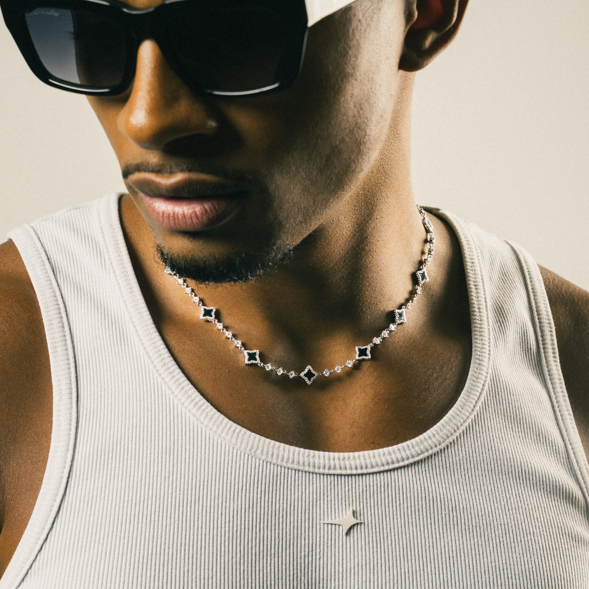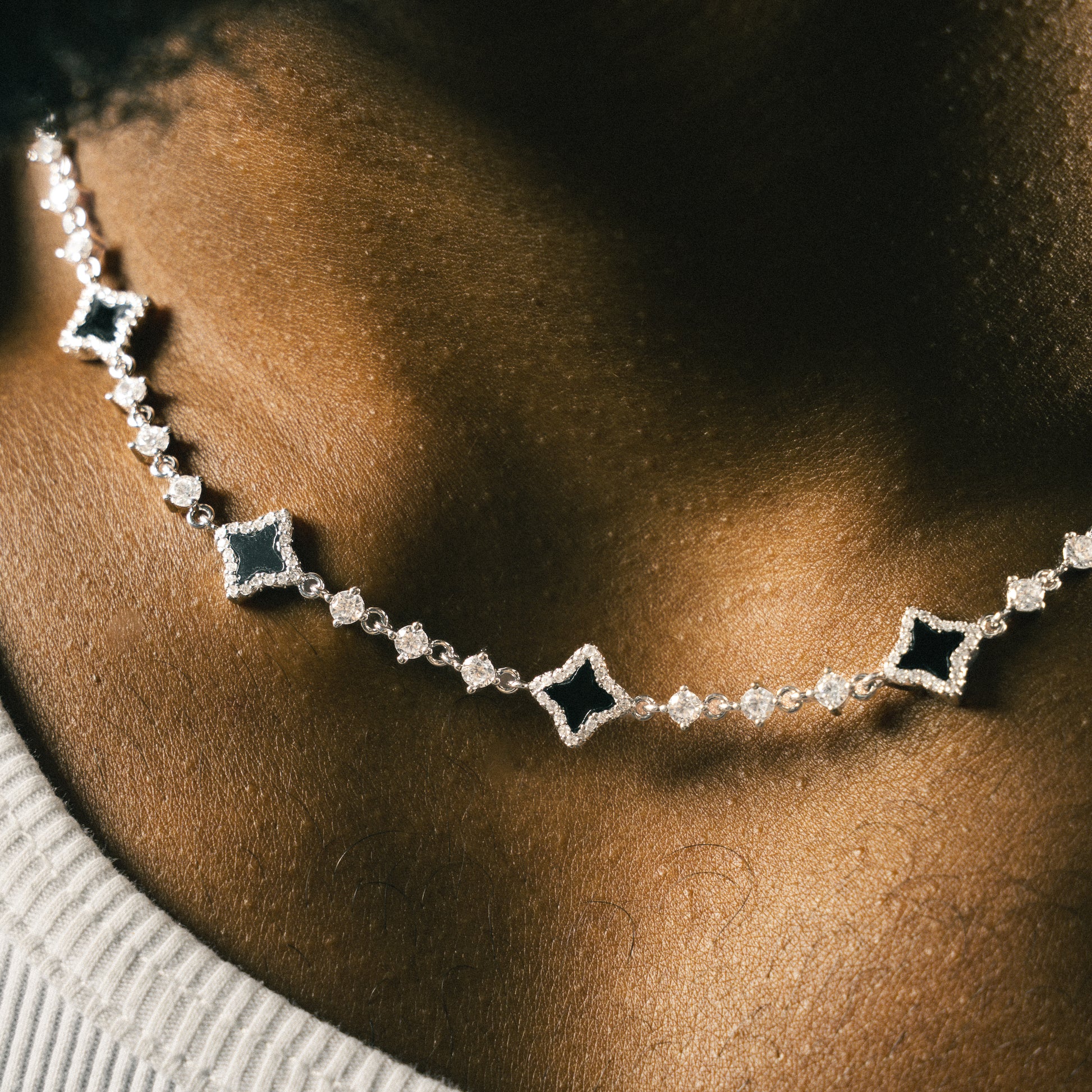 Découvrez notre Chaîne Flower Tennis, une pièce qui marie l'élégance intemporelle de la chaîne tennis et la délicatesse des fleurs. Chacune des fleurs, ornée d'une pierre imitation onyx et d'une épaisseur de 8 mm, ajoute une touche de charme et de sophistication à cette chaîne de 3 mm.