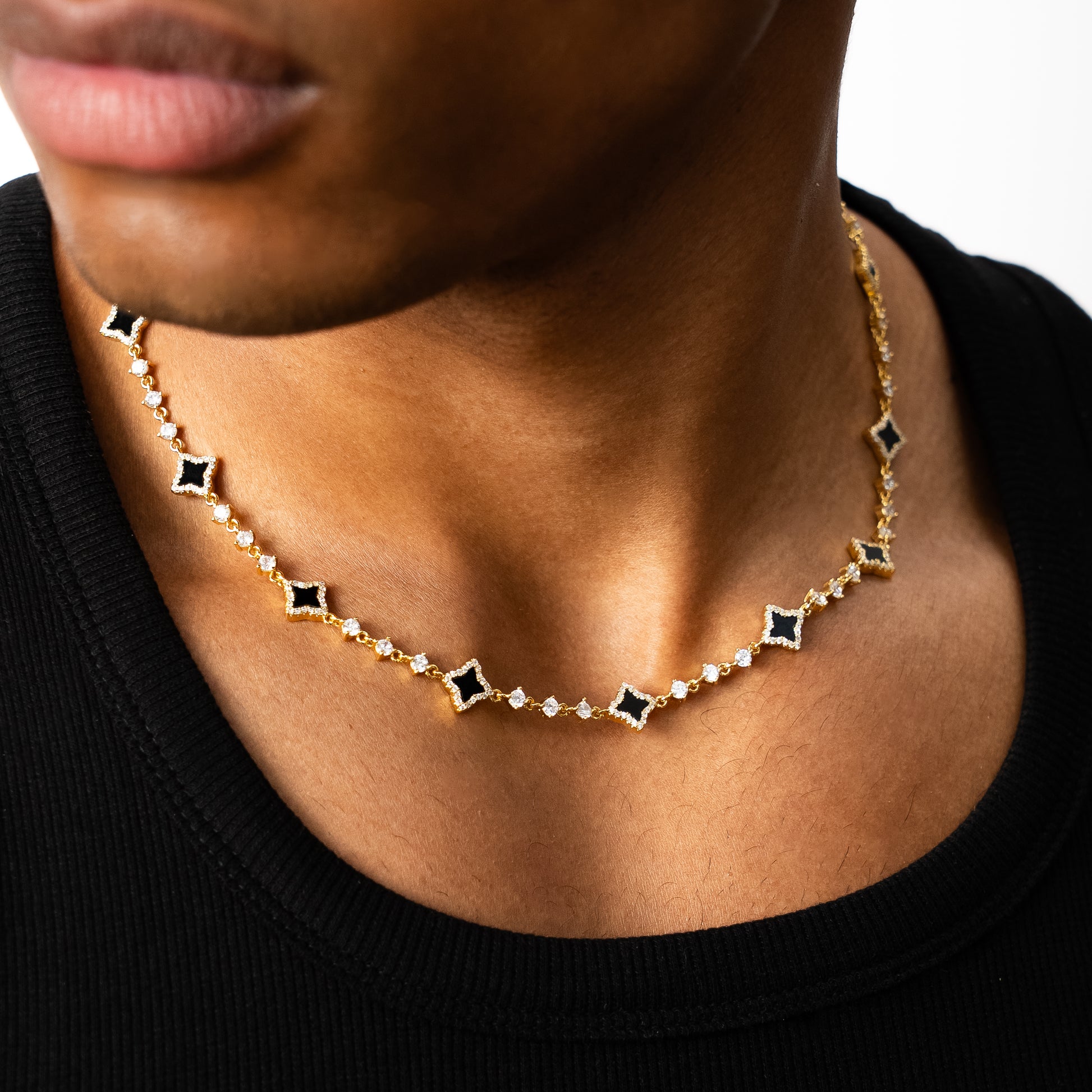 Découvrez notre Chaîne Flower Tennis, une pièce exquise qui marie l'élégance intemporelle de la chaîne tennis et la délicatesse des fleurs. Chacune des fleurs, ornée d'une pierre imitation onyx et d'une épaisseur de 8 mm, ajoute une touche de charme et de sophistication à cette chaîne de 3 mm.
