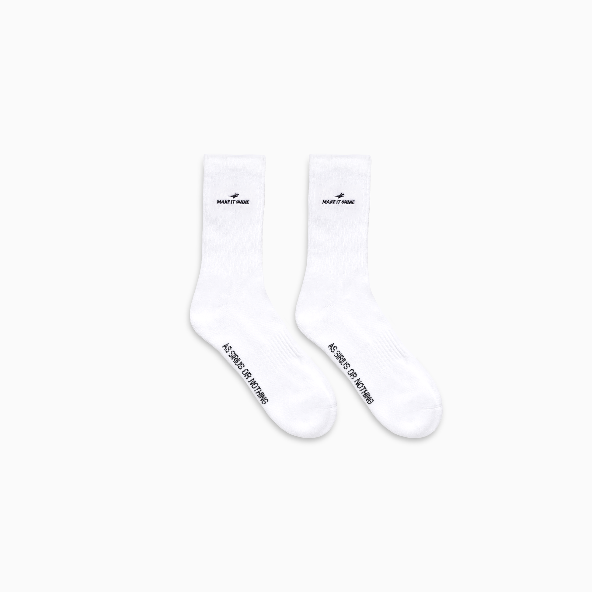 Les chaussettes Signature blanches avec broderie noire sont conçues en 100% coton et portent le logo Make it Shine.