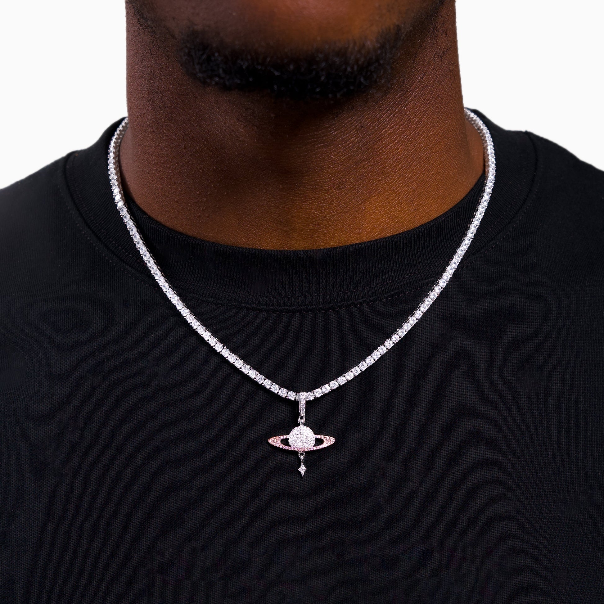 Découvrez notre pendentif Falling Planet, une pièce unique qui capture la beauté cosmique. Ce bijou représente une planète ornée d'oxydes de zirconium étincelants, encerclée d'un anneau délicat. Une étoile scintillante suspendue ajoute une touche de mouvement et d'élégance à l'ensemble.