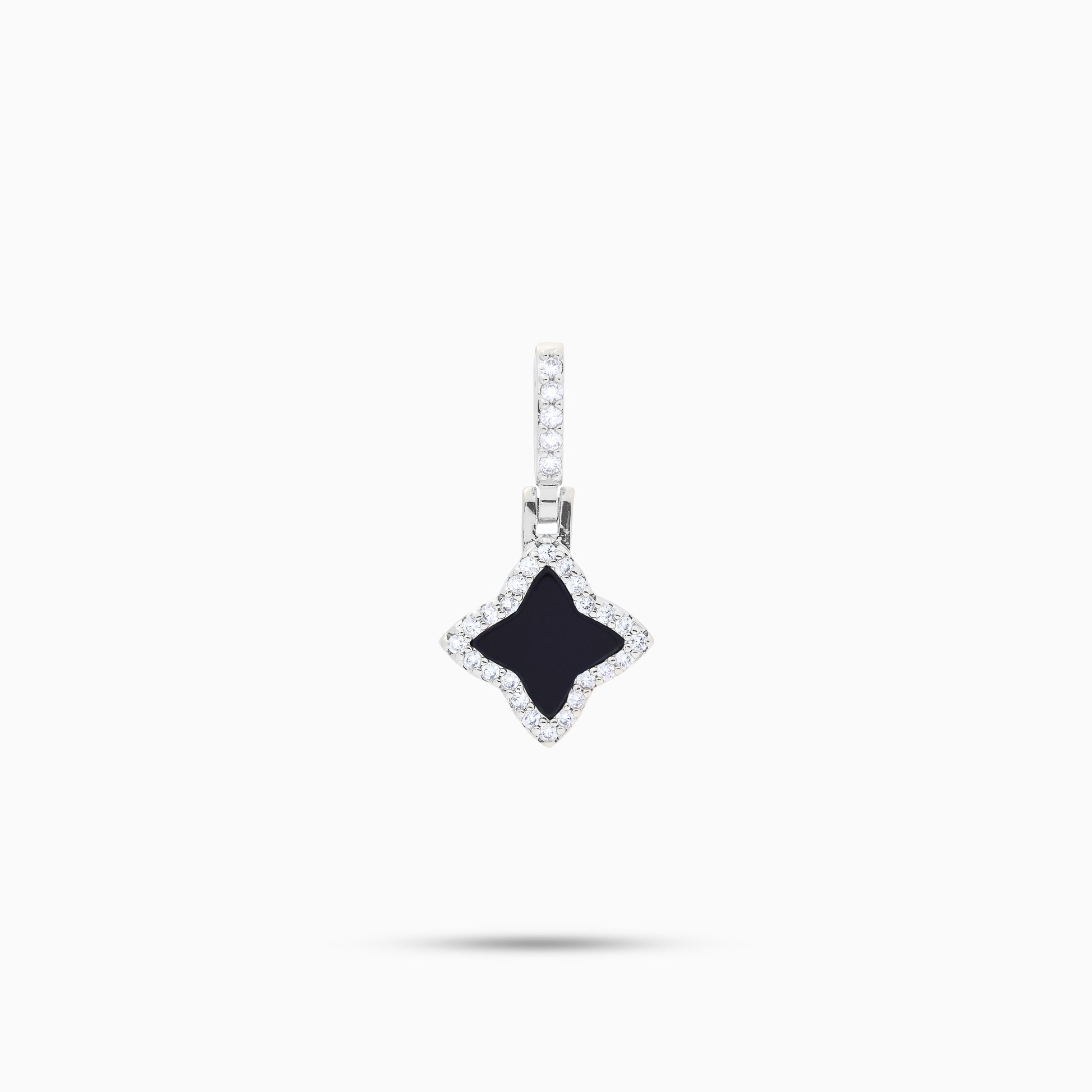 Voici notre pendentif Flower, alliant délicatesse et raffinement intemporel. Au cœur de ce bijou, une fleur sertie de pierres scintillantes met en valeur une pierre centrale en imitation onyx, le tout offrant une épaisseur de 8 mm pour un charme subtil et lumineux.