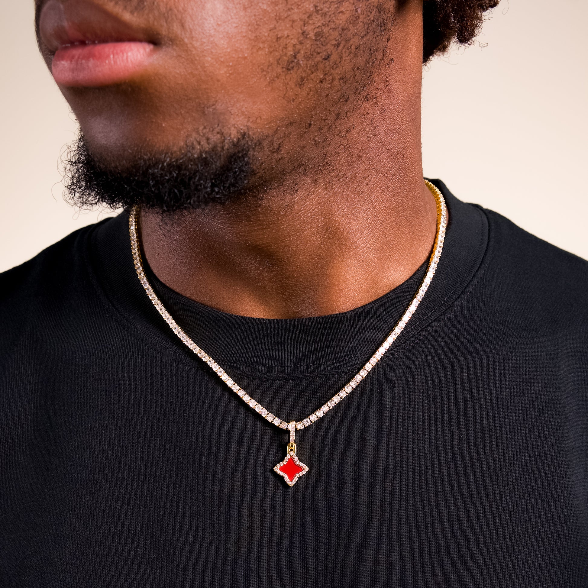 Voici notre pendentif Flower, alliant délicatesse et raffinement intemporel. Au cœur de ce bijou, une fleur sertie de pierres scintillantes met en valeur une pierre centrale en imitation cornaline, le tout offrant une épaisseur de 8 mm pour un charme subtil et lumineux.