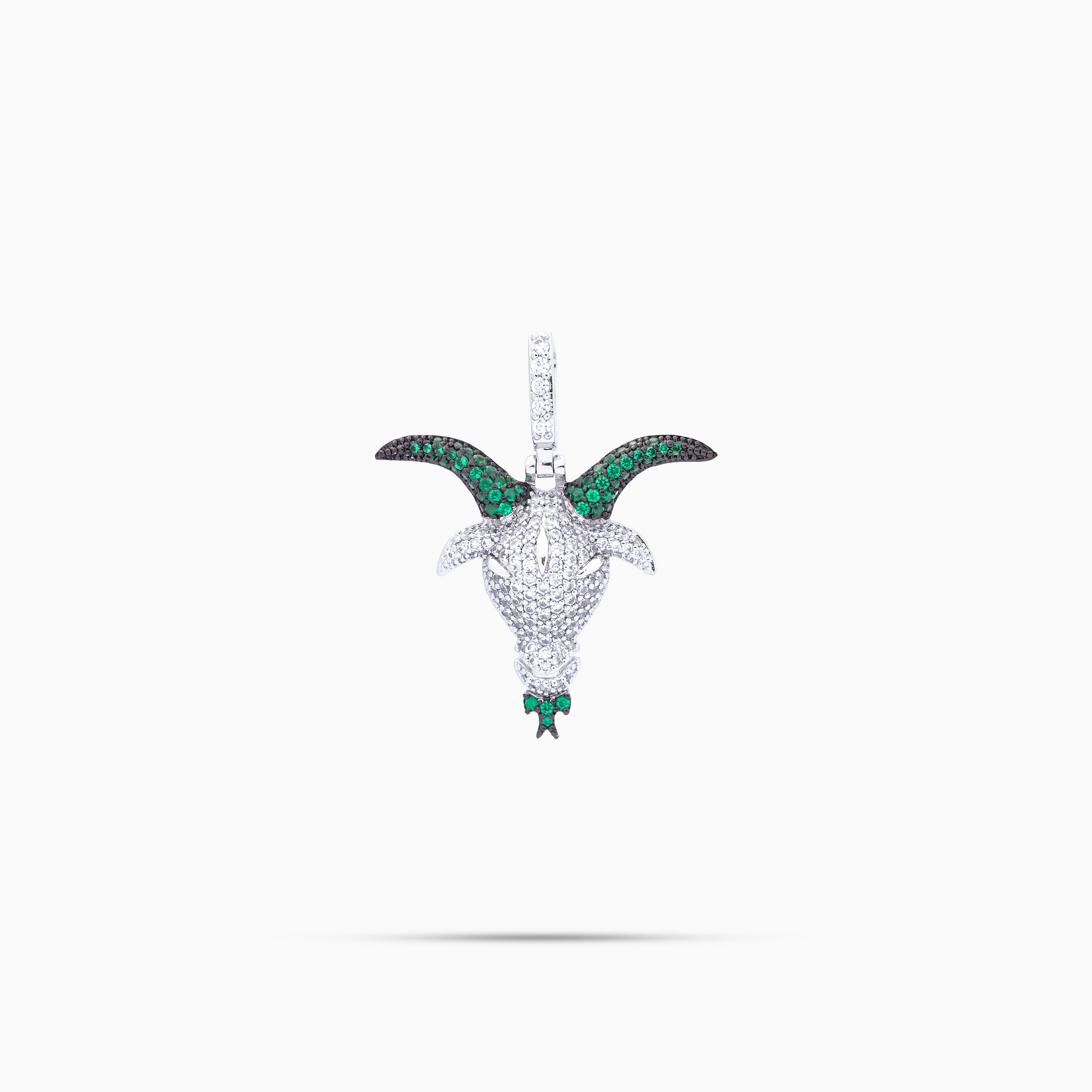 Découvrez notre pendentif exclusif GOAT, une création unique en collaboration avec l'équipe Tonsser, symbolisant l'excellence et le titre du meilleur joueur. Ce pendentif représente une chèvre majestueuse ornée d'oxydes de zirconium blancs, avec des détails distinctifs comme des oxydes verts scintillants sur ses cornes et son bouc.