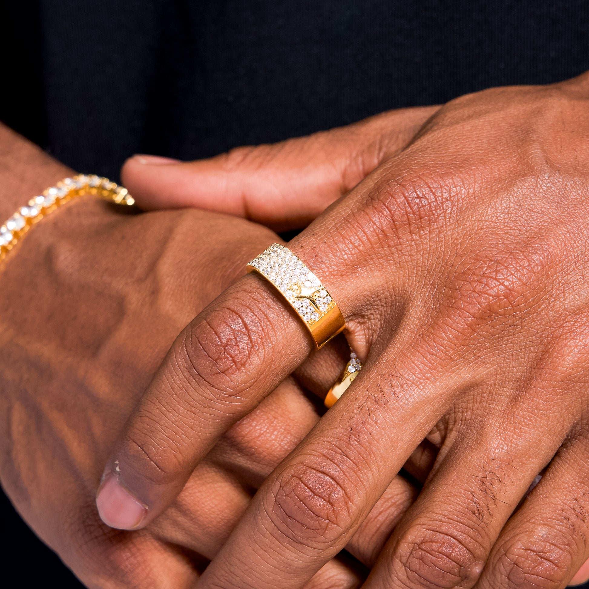 Découvrez notre bague Iced band Signature, une pièce raffinée de Make it Shine. Avec son anneau de 8 mm partiellement serti d'oxydes de zirconium et son logo discret, cette bague incarne l'élégance et le style raffiné.