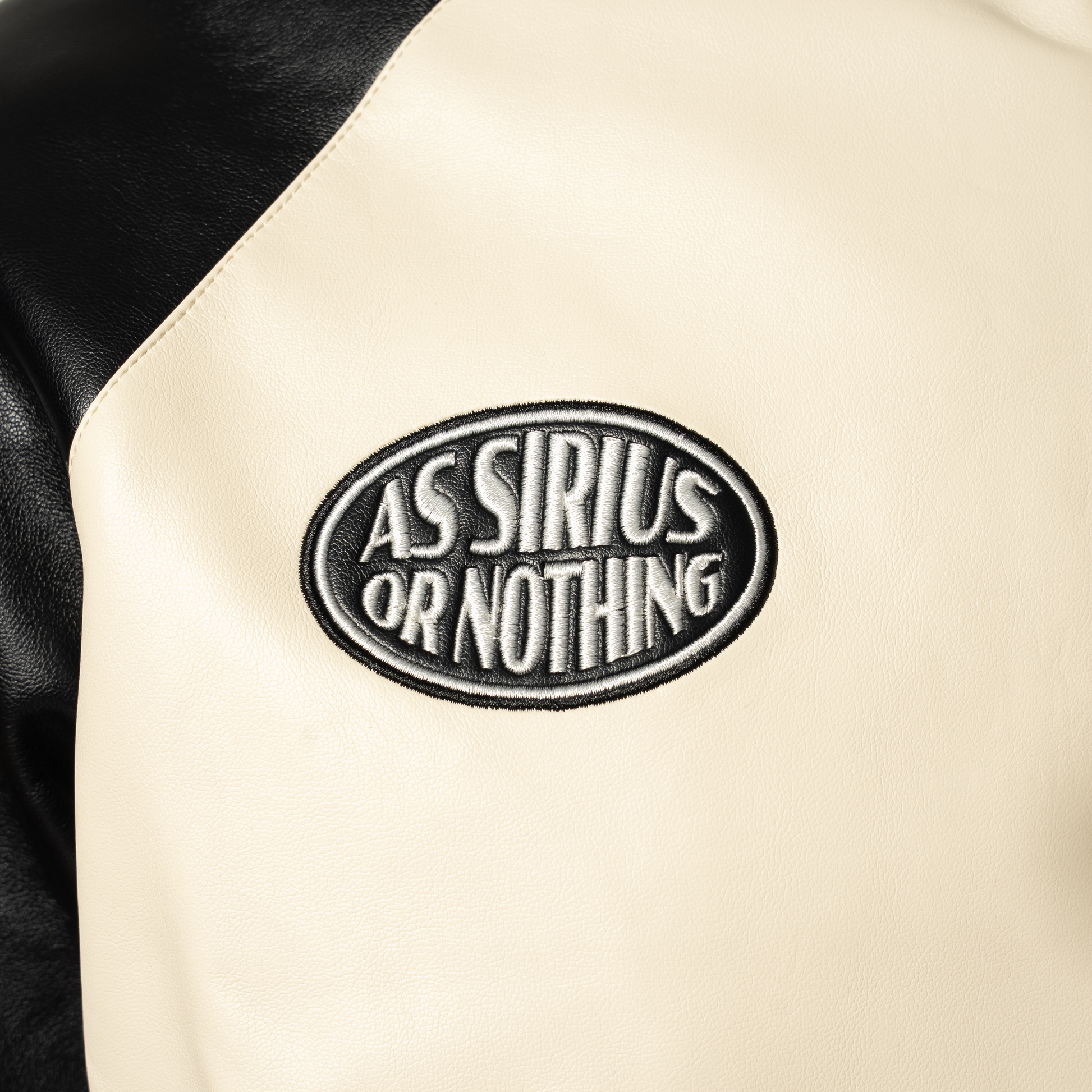 Confectionnée en similicuir lisse, cette veste se distingue par son contraste bicolore et ses marquages iconiques Make It Shine. À l’avant, l’inscription audacieuse “MAKE IT SHINE” souligne son caractère affirmé, tandis qu’au dos, la mention “Powered by Make It Shine” accompagnée d’un motif ailé renforce son identité visuelle.