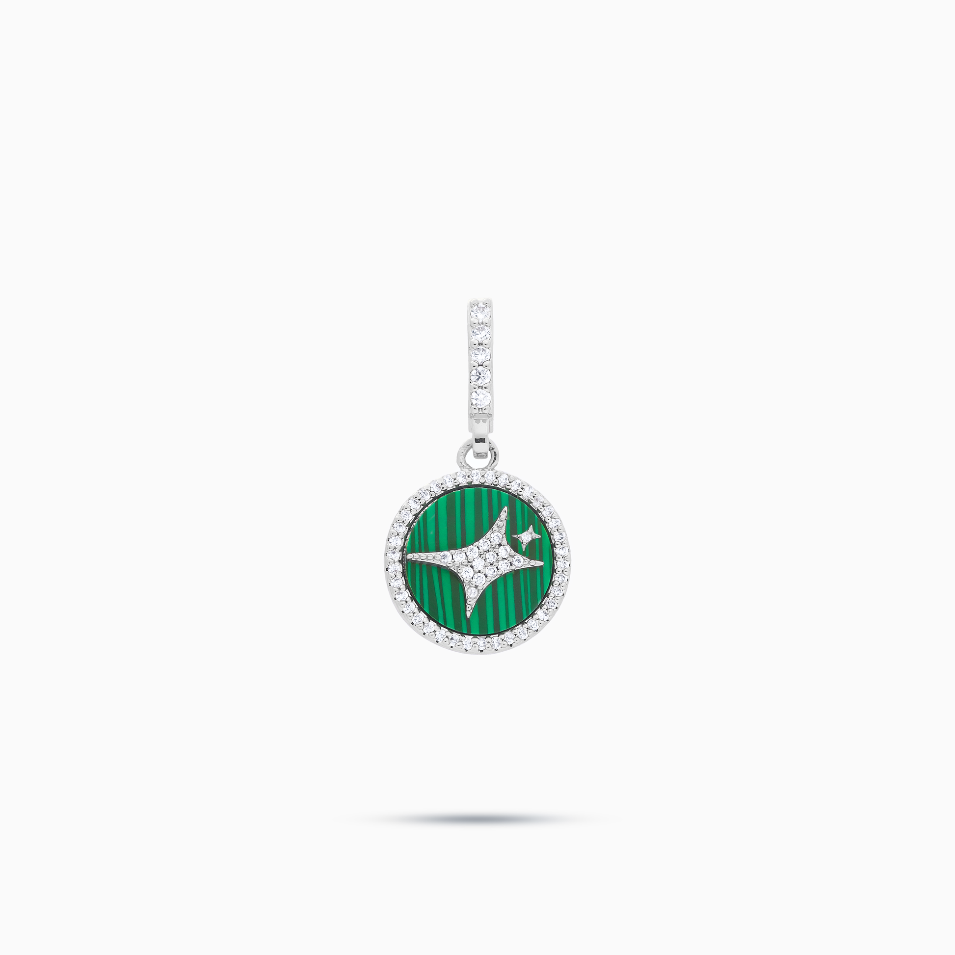 Découvrez notre médaillon Signature, un bijou éclatant qui sublime notre célèbre logo étoilé. D'un diamètre de 1,5 cm, ce pendentif raffiné est orné d'une pierre imitation malachite et d'oxydes de zirconium étincelants, mettant en lumière notre étoile au centre. Parfait pour ajouter une touche de sophistication et de brillance à vos tenues.