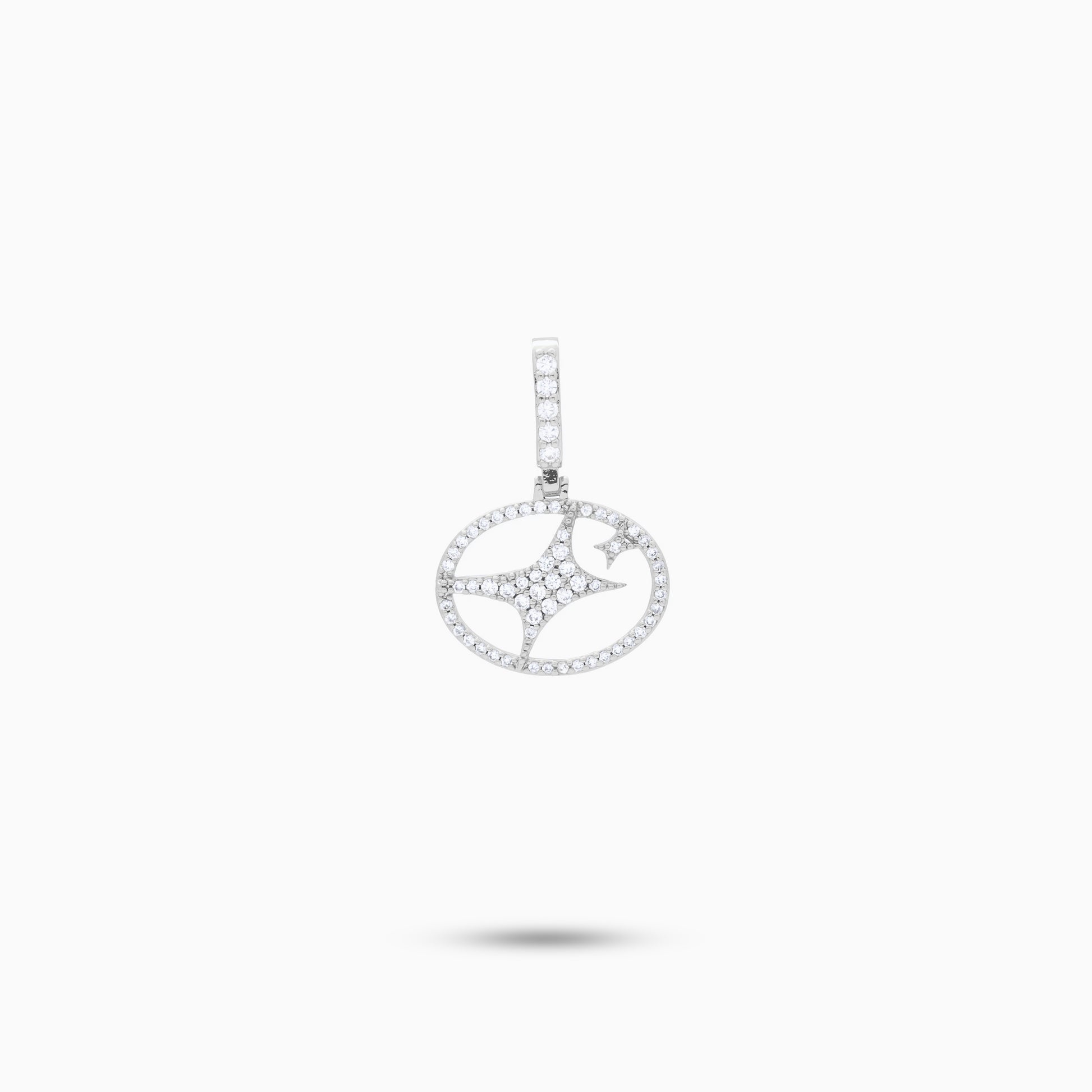 Voici notre pendentif Iced Round Signature, un bijou éclatant de 2 cm mettant en valeur notre célèbre logo encerclé et orné d'oxydes de zirconium.