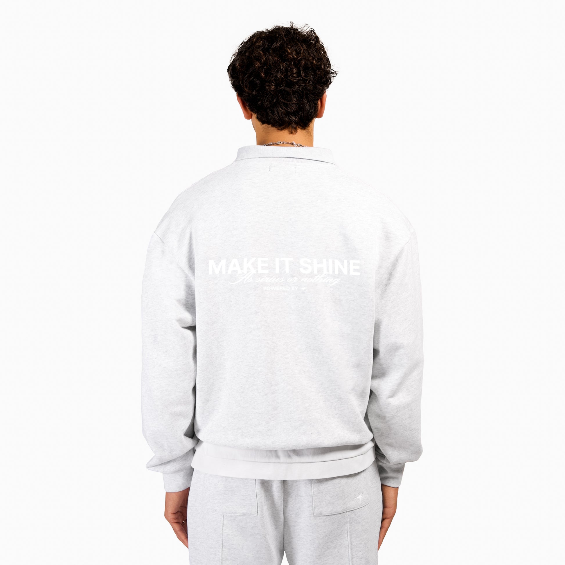 Polo sweater gris en jersey à manches longues avec une coupe oversize, fabriqué à partir d'un coton épais de qualité supérieure. Col polo avec boutons-pression. Ourlet et poignets côtelés.