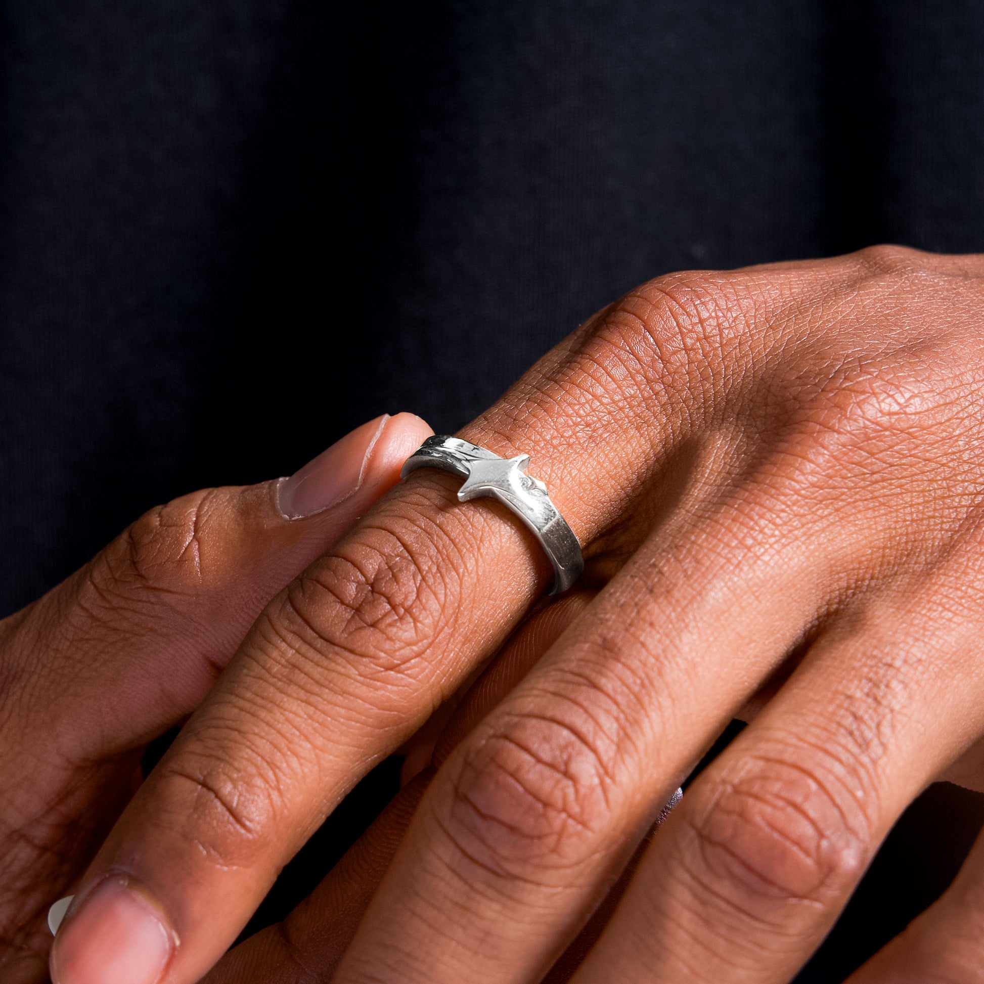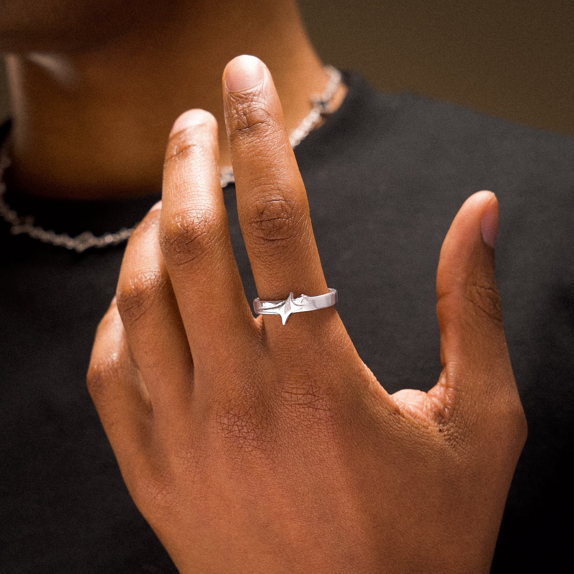 Cette bague Signature ring rend hommage au logo emblématique de la Maison. Son anneau de 4 mm arbore une étoile de 11 mm, ajoutant une touche d'élégance à votre style.
