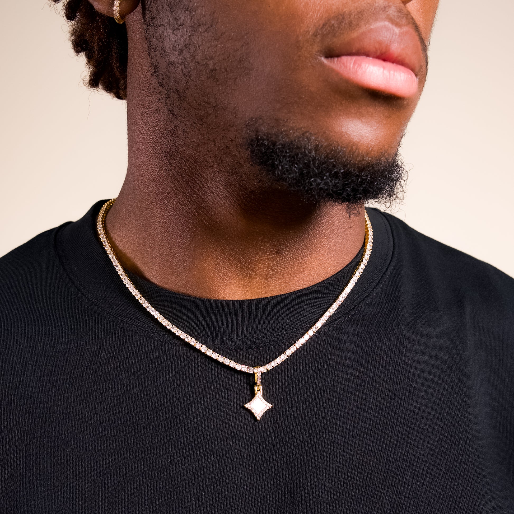 Voici notre pendentif Star, alliant élégance et éclat. Au cœur de ce bijou, une étoile sertie de pierres scintillantes met en valeur une pierre centrale en imitation nacre, le tout offrant une épaisseur de 8 mm pour un charme subtil et lumineux.