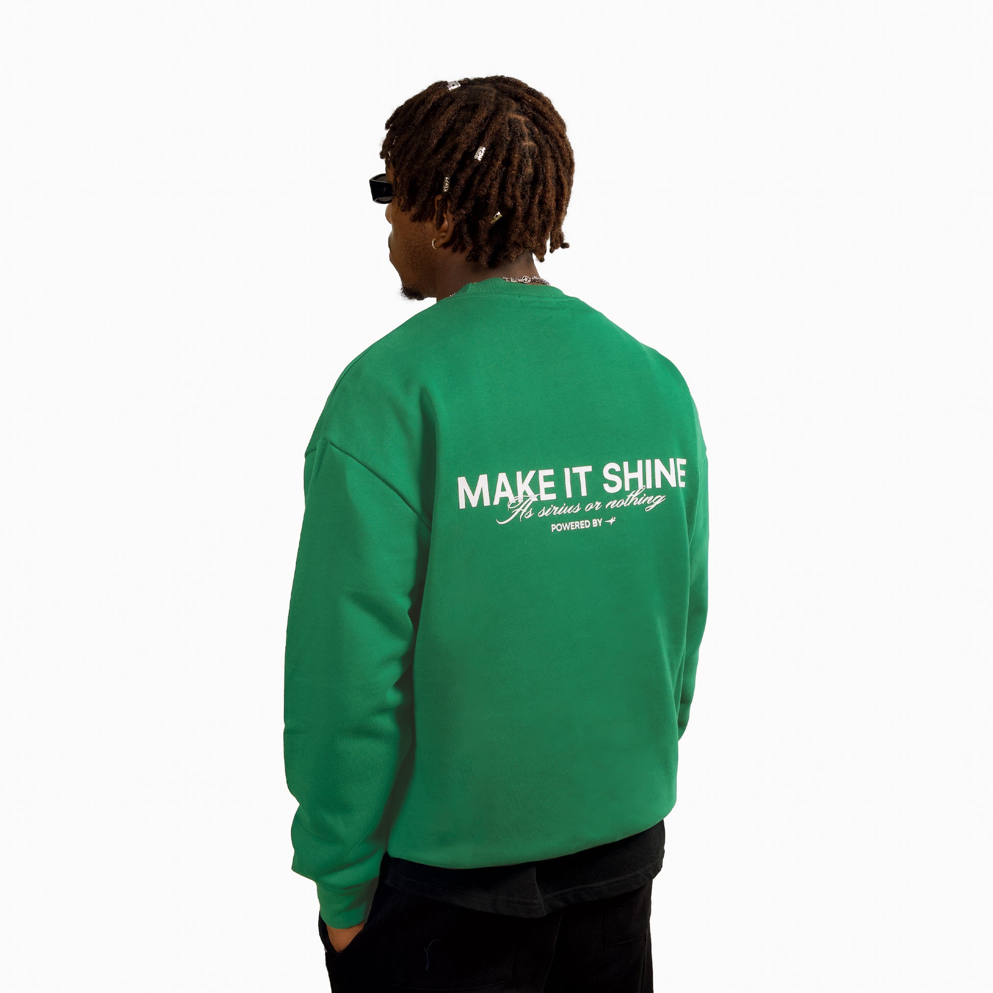 Sweat vert en jersey à manches longues avec une coupe oversize, fabriqué à partir d'un coton épais de qualité supérieure. Col ras de cou côtelé.