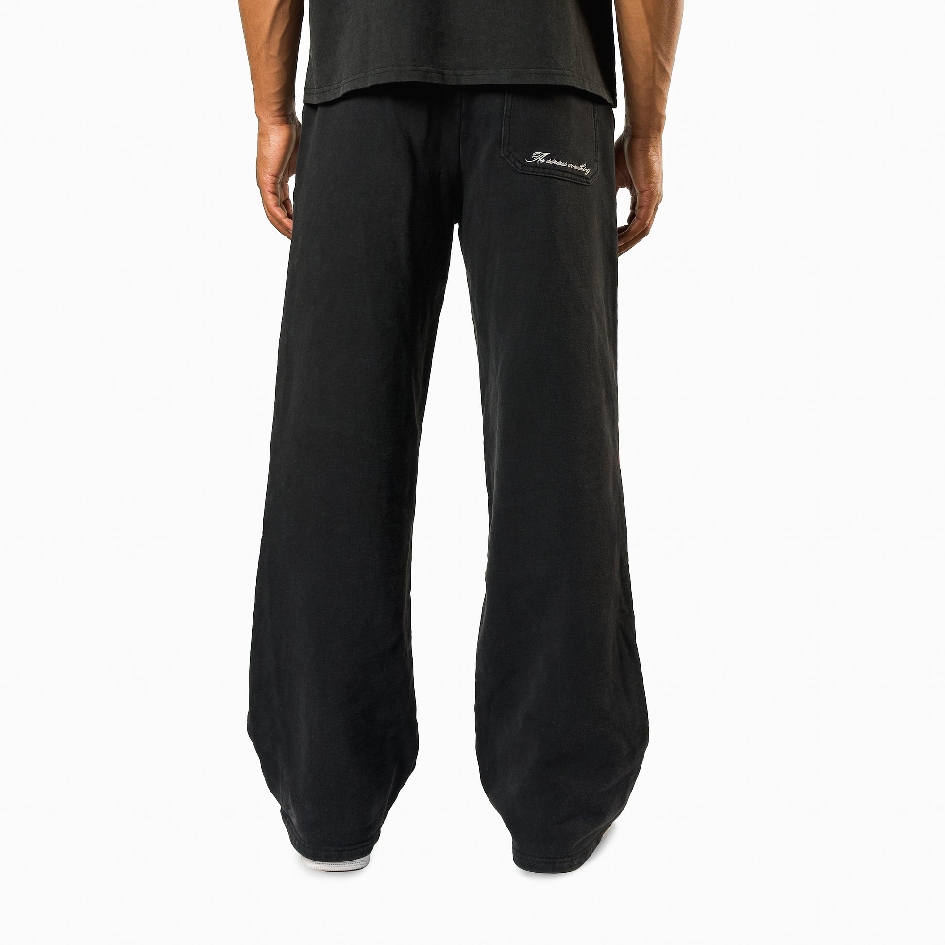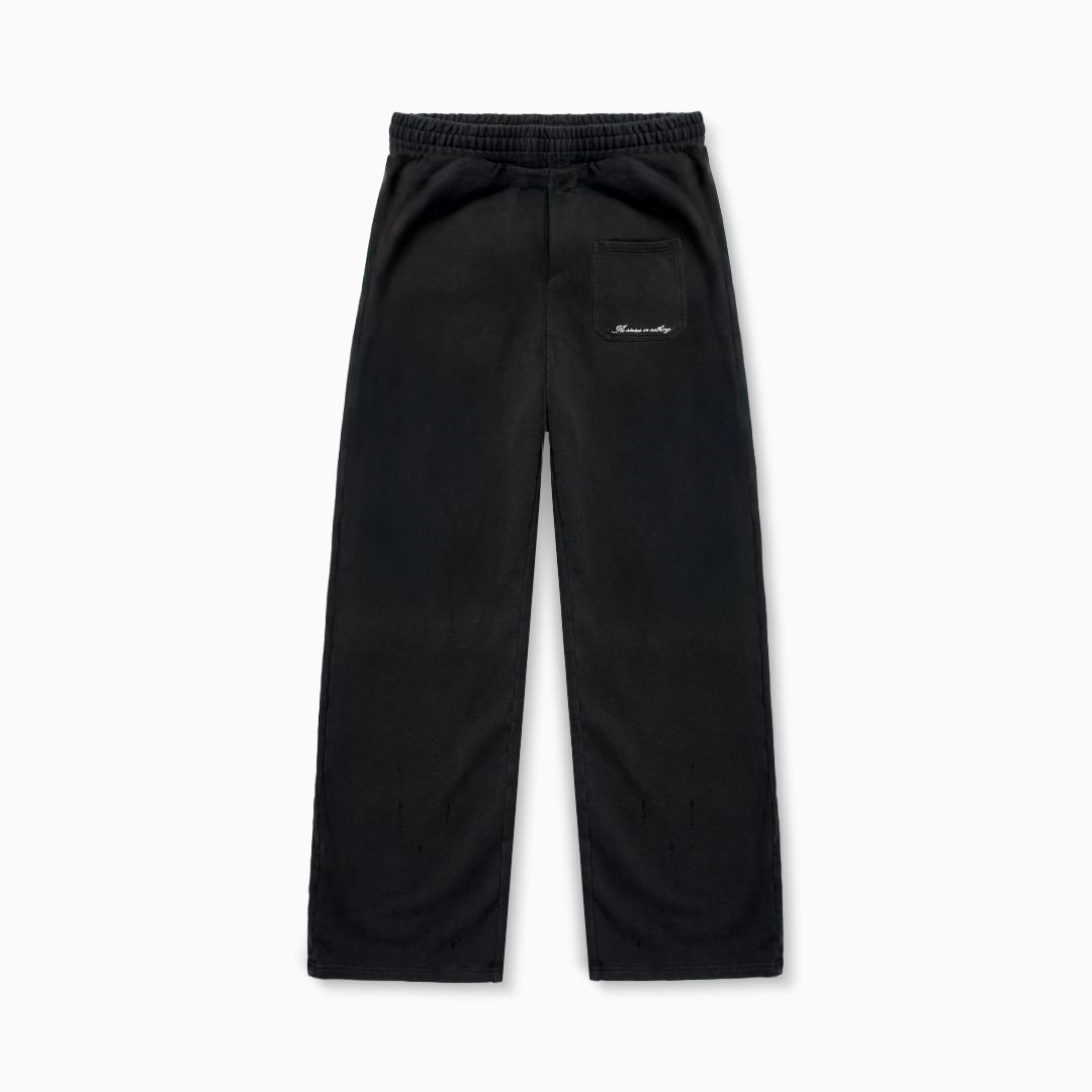 Sweatpant noir délavé en jersey épais avec une coupe ample et confortable, confectionné en 100% coton de qualité supérieure. Doté de poches latérales pratiques et d’une taille élastique avec cordons de serrage internes pour un ajustement optimal.