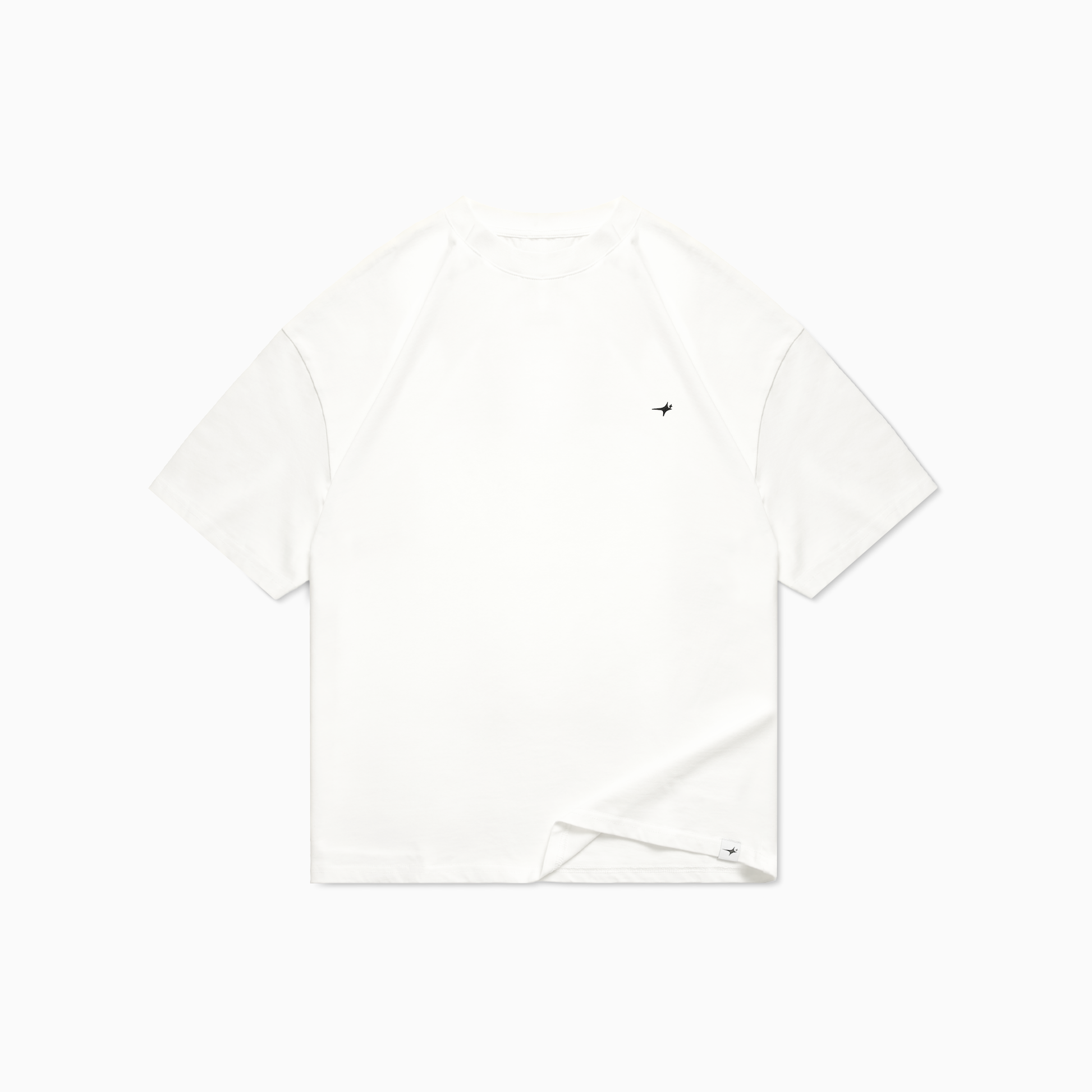 T-shirt blanc en jersey à manches courtes avec une coupe oversize, confectionné en coton épais. Col ras de cou côtelé.