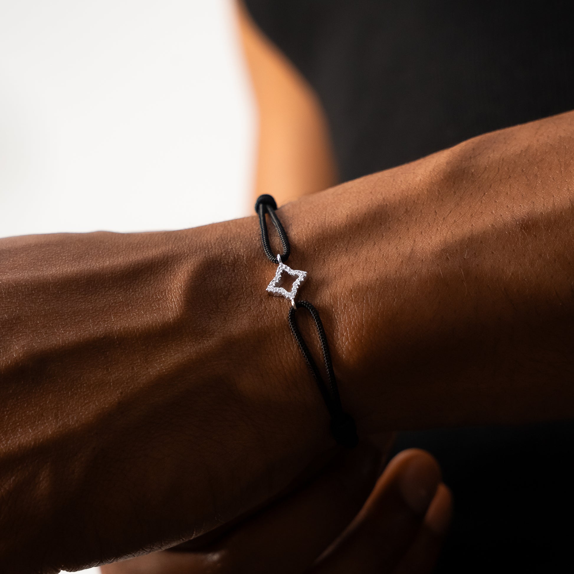 Discover this cord bracelet accompanied by a flower decorated with sparkling stones and a thickness of 8 mm, available in six different colors.