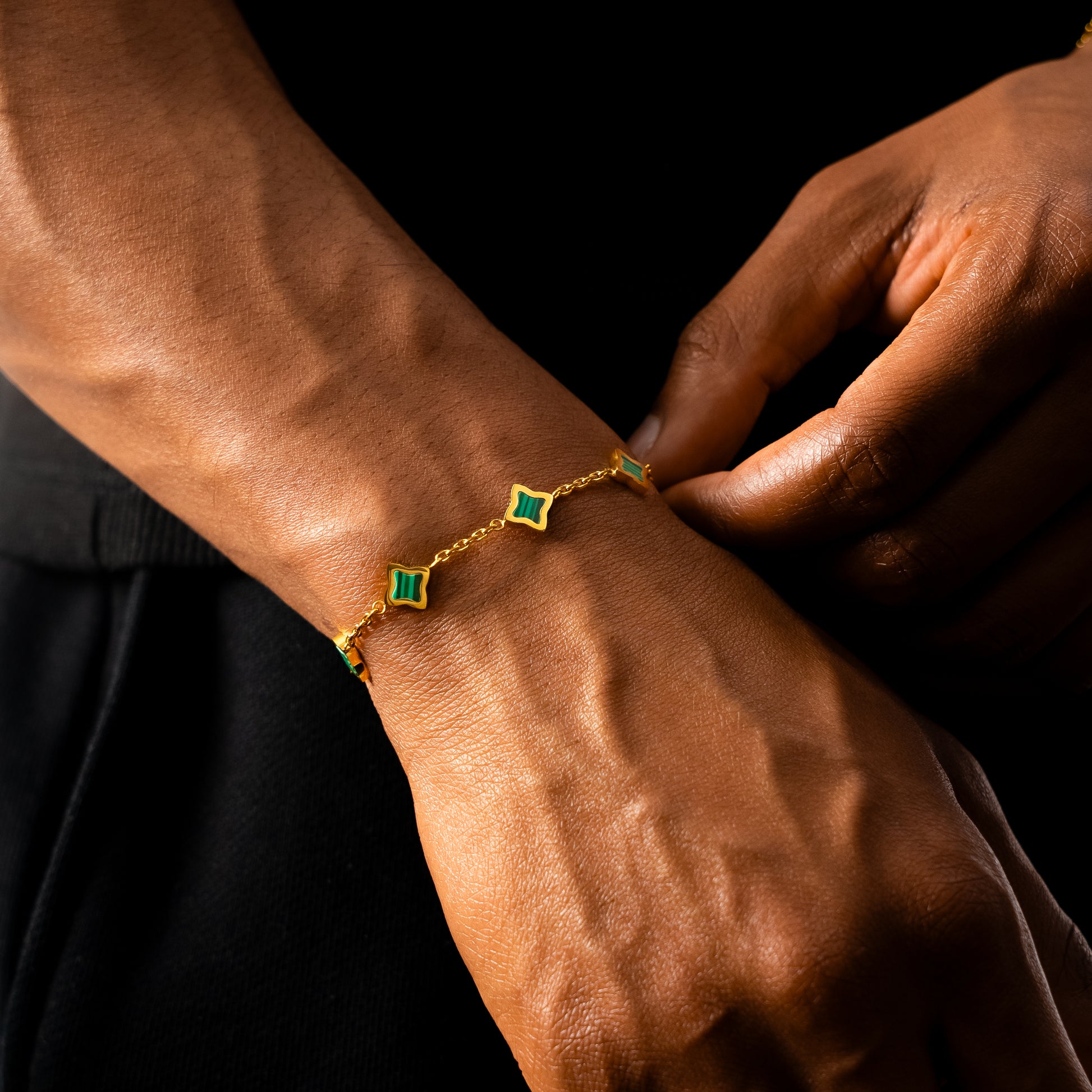 Discover our Flower Bracelet, an exquisite piece that combines the timeless elegance of a cable chain with the delicacy of flowers. Each flower, adorned with a Malachyte imitation stone and measuring 8mm in thickness, adds a touch of charm and sophistication to this 2mm chain.