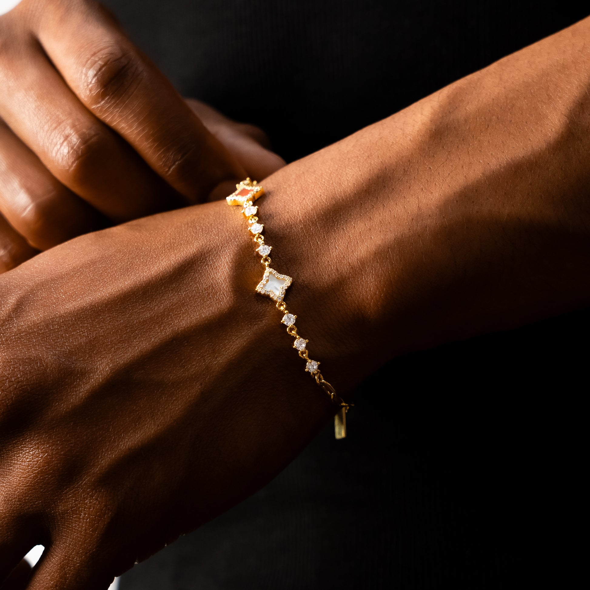 Discover our Flower Tennis Bracelet, an exquisite piece that combines the timeless elegance of the tennis bracelet and the delicacy of flowers. Each of the flowers, adorned with an imitation mother-of-pearl stone and measuring 8 mm thick, adds a touch of charm and sophistication to this 3 mm bracelet.