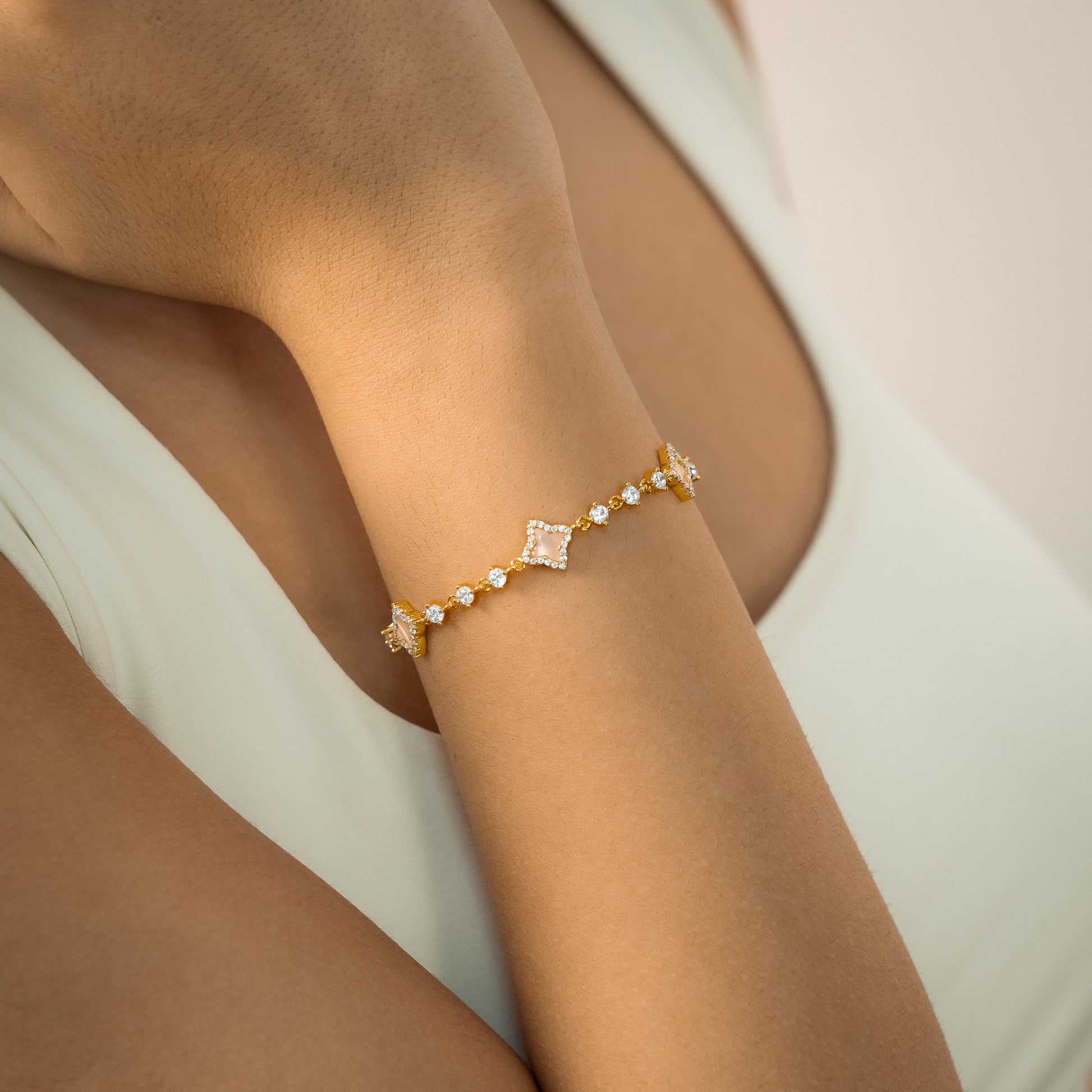 Discover our Flower Tennis Bracelet, an exquisite piece that combines the timeless elegance of the tennis bracelet and the delicacy of flowers. Each of the flowers, adorned with an imitation mother-of-pearl stone and measuring 8 mm thick, adds a touch of charm and sophistication to this 3 mm bracelet.