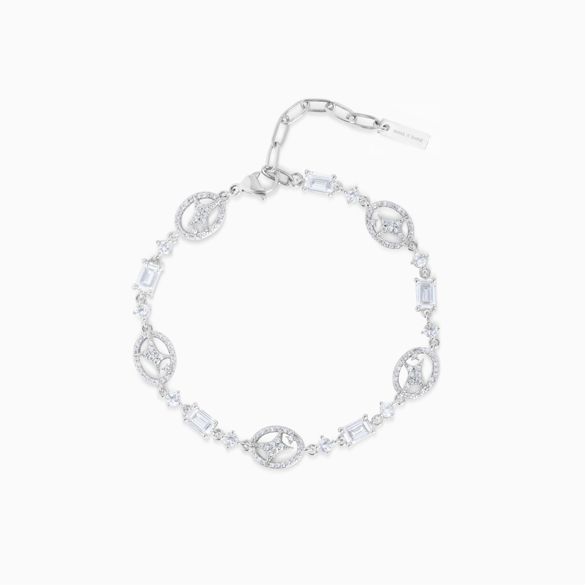 Discover our Iced Signature Bracelet, a sophisticated piece adorned with our famous circled logo, accompanied by 4mm baguette-shaped stones. This jewel will bring a touch of shine to your style.