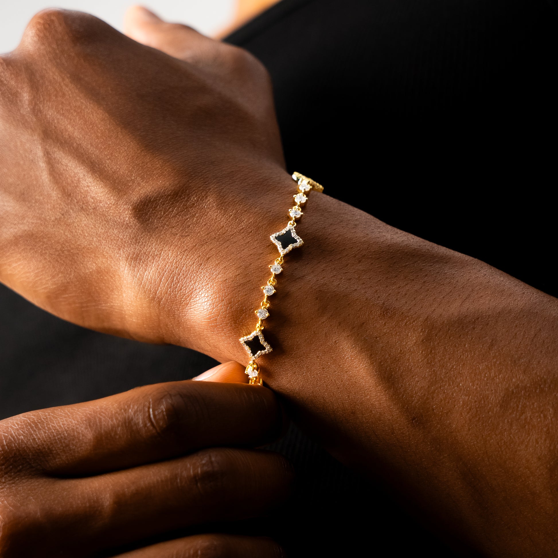 Discover our Flower Tennis Bracelet, an exquisite piece that combines the timeless elegance of the tennis bracelet and the delicacy of flowers. Each of the flowers, decorated with an imitation onyx stone and measuring 8 mm thick, adds a touch of charm and sophistication to this 3 mm bracelet.