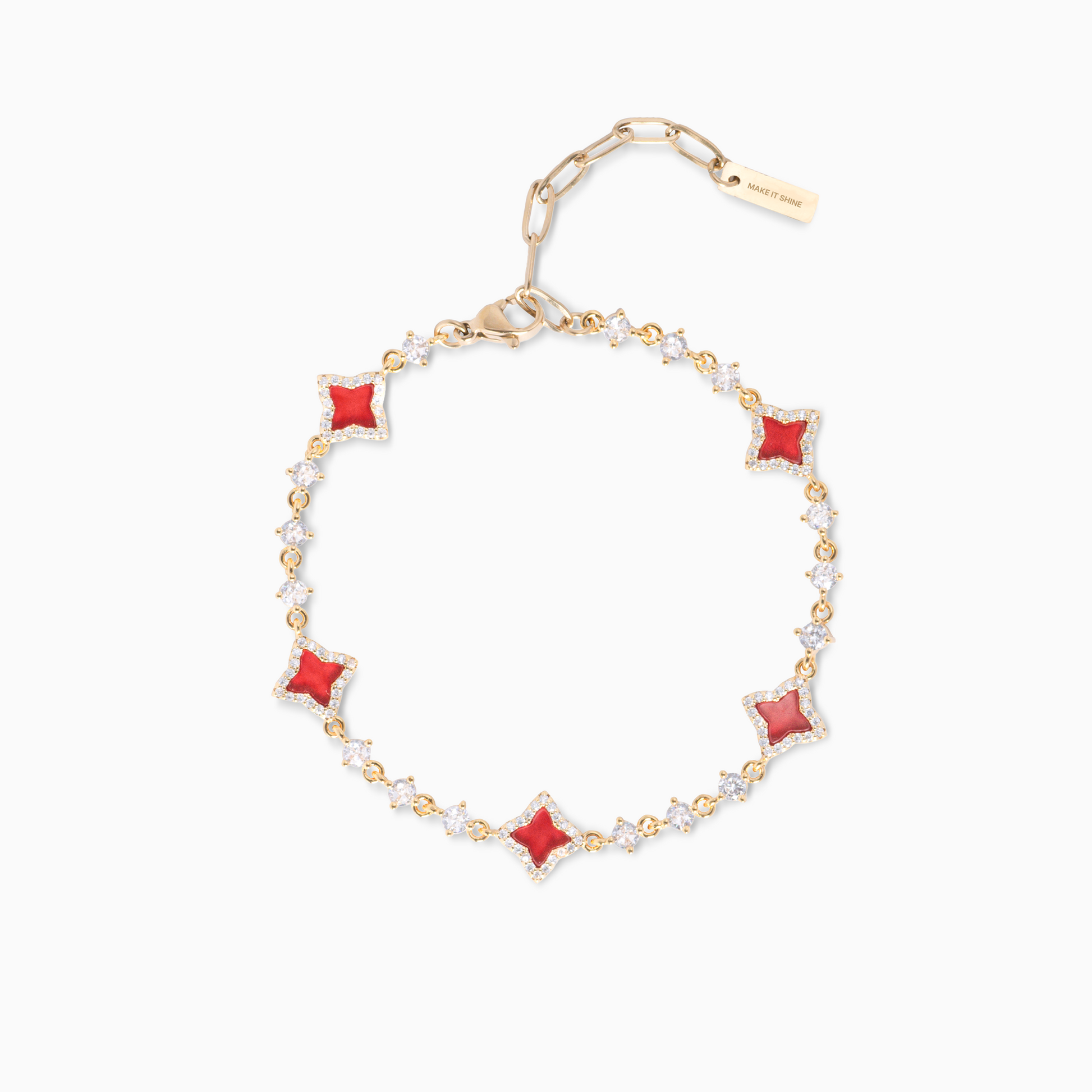 Discover our Flower Tennis Bracelet, an exquisite piece that combines the timeless elegance of the tennis bracelet and the delicacy of flowers. Each of the flowers, adorned with an imitation carnelian stone and measuring 8 mm thick, adds a touch of charm and sophistication to this 3 mm bracelet.