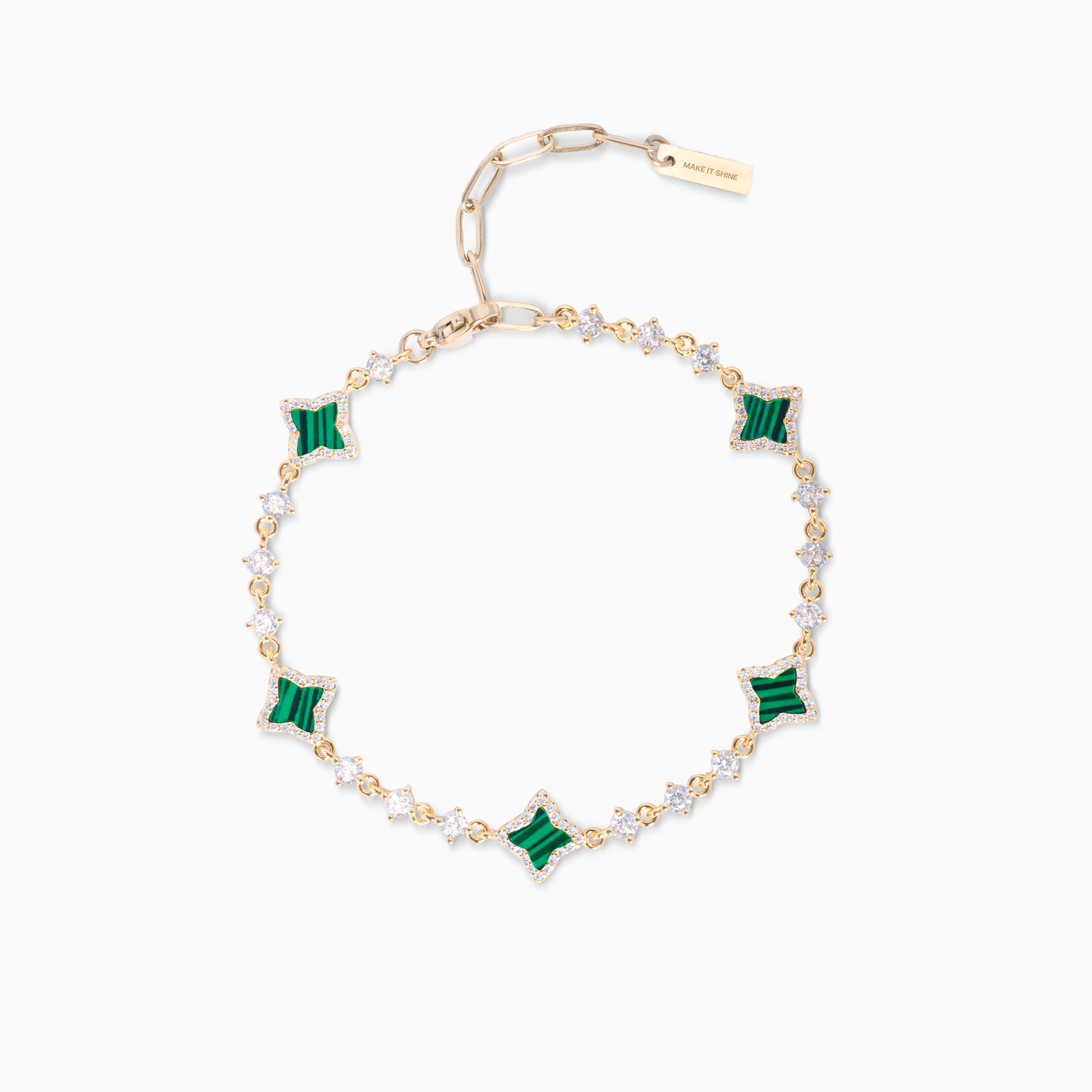 Discover our Flower Tennis Bracelet, an exquisite piece that combines the timeless elegance of the tennis bracelet and the delicacy of flowers. Each of the flowers, decorated with an imitation malachite stone and measuring 8 mm thick, adds a touch of charm and sophistication to this 3 mm bracelet.