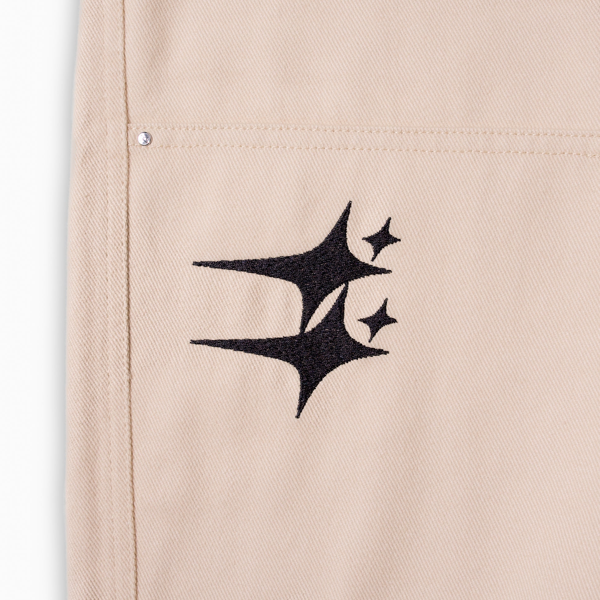 Meet our Carpenter Denim Make it Shine, a loose-fit denim pant designed for comfort and style. Made from 100% cotton, it features black embroidered logos on the front and back, as well as a "Make it Shine" embroidery on the back pocket for a distinctive touch. Custom metal hardware and a logo-engraved button closure add a touch of understated luxury to this must-have piece.