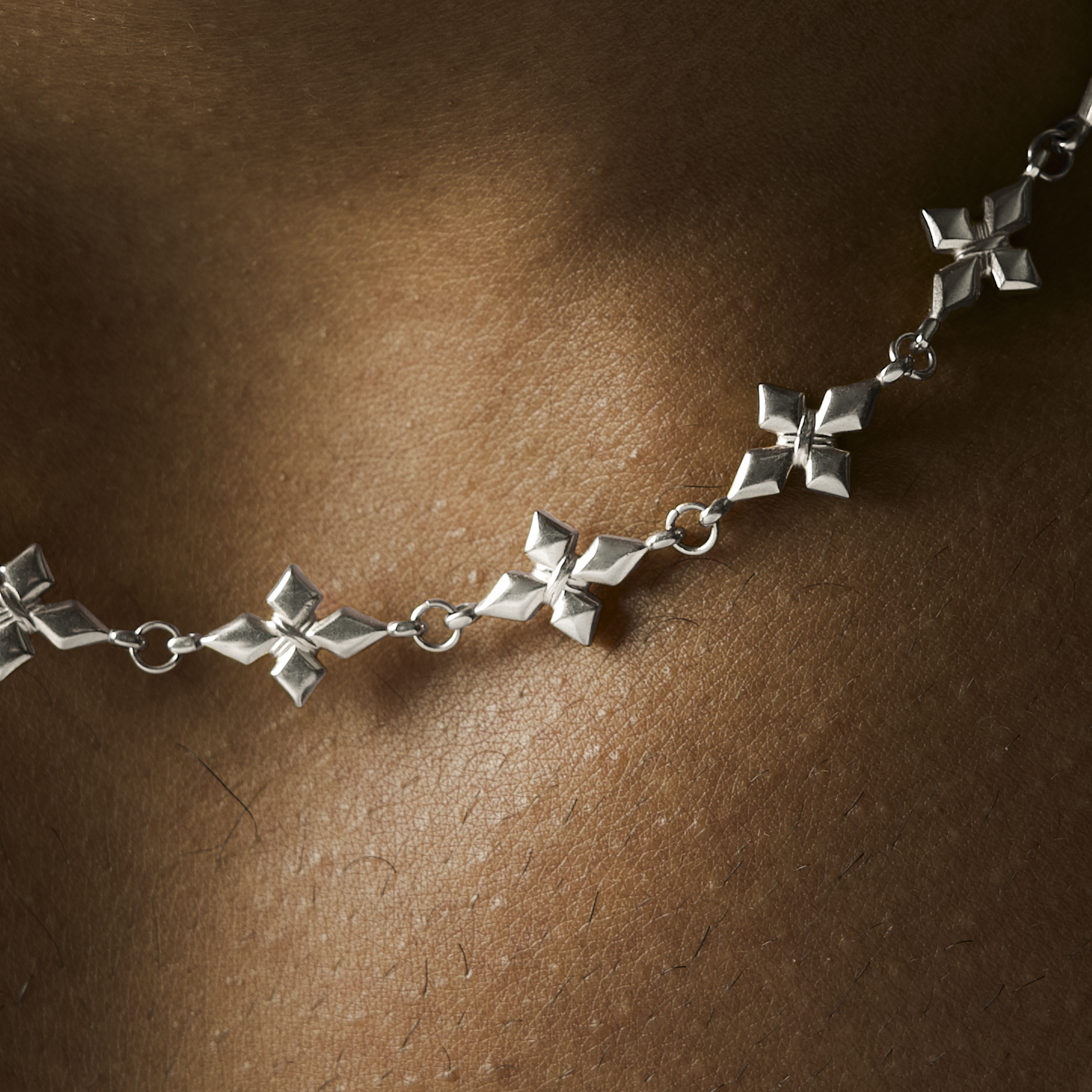 Each link creates a subtle play of reflections, capturing the light with each movement.