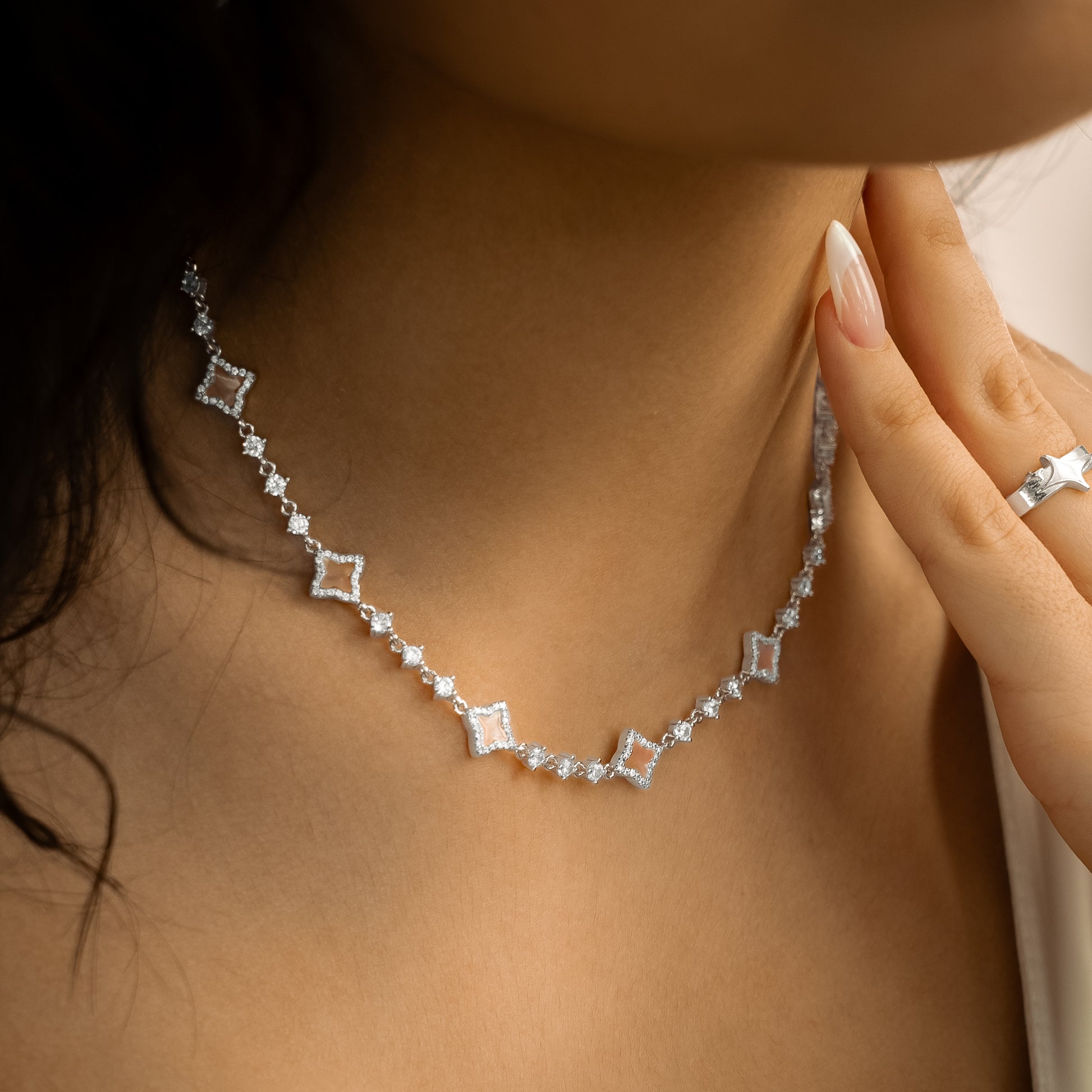Discover our Flower Tennis Chain, an exquisite piece that combines the timeless elegance of the tennis bracelet with the delicacy of flowers. Each flower, adorned with an imitation mother-of-pearl stone and measuring 8 mm thick, adds a touch of charm and sophistication to this 3 mm bracelet.
