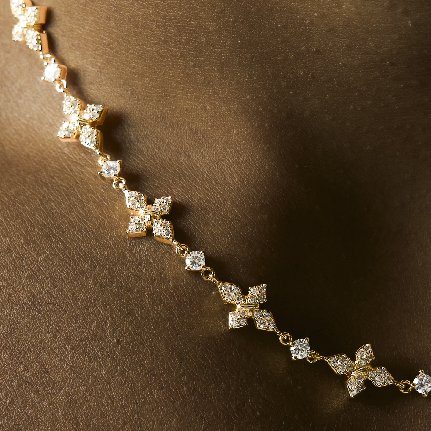 - Gold-finish metal jewelry & CZ stones (yellow, white, or rose): Each layer is precisely applied for a high-quality finish and lasting brilliance. To preserve the shine, avoid contact with water, sweat, and chemicals. Remove before showering, swimming, or exercising.