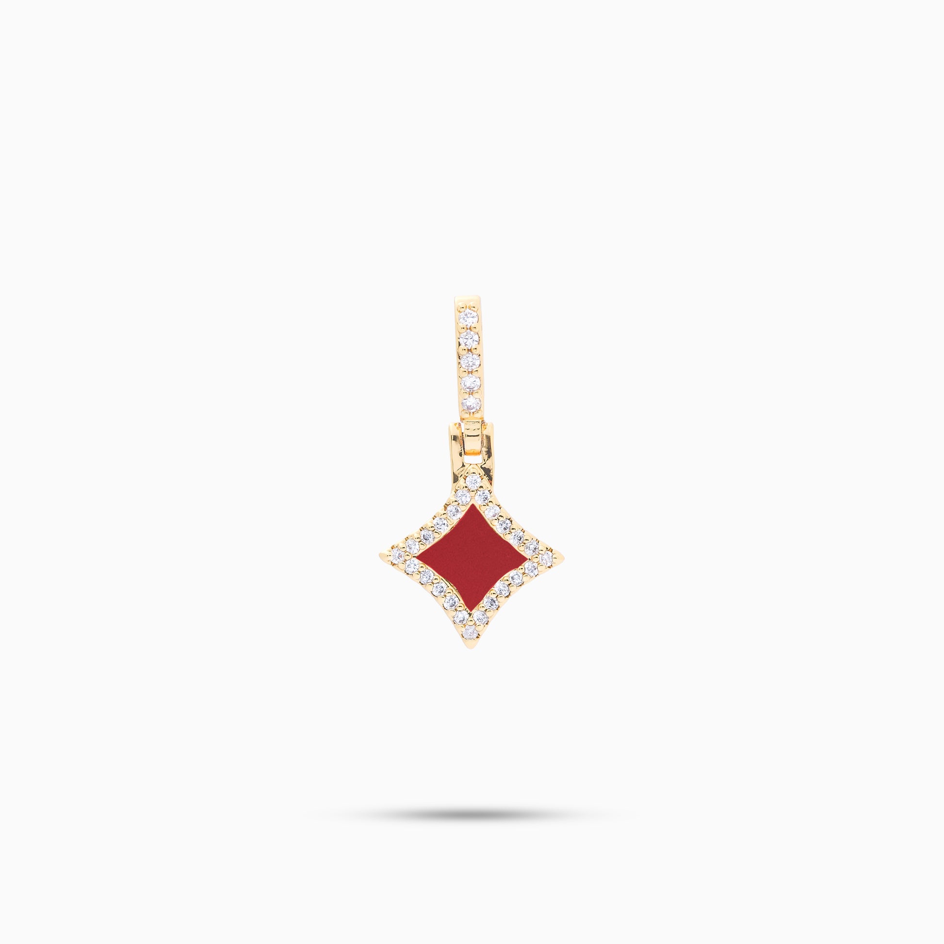 Here is our Star pendant, combining elegance and brilliance. At the heart of this jewel, a star encrusted with sparkling stones highlights a central stone in imitation carnelian, offering a thickness of 8 mm for a subtle and luminous charm.