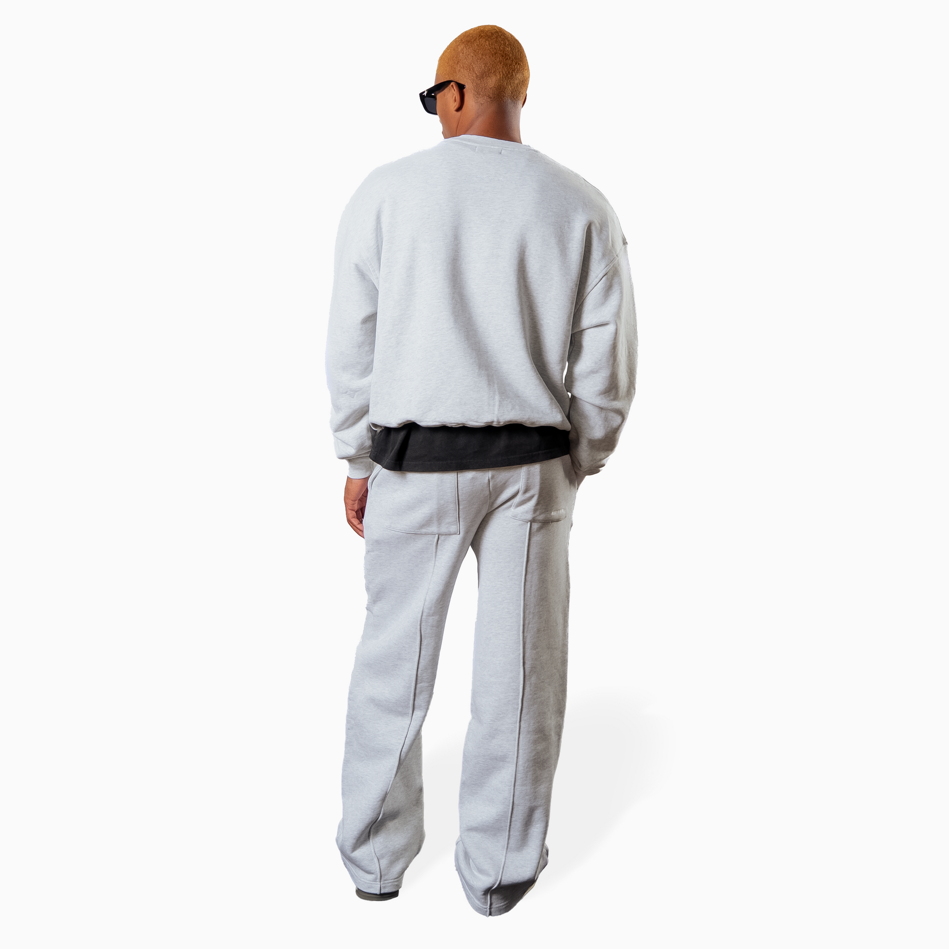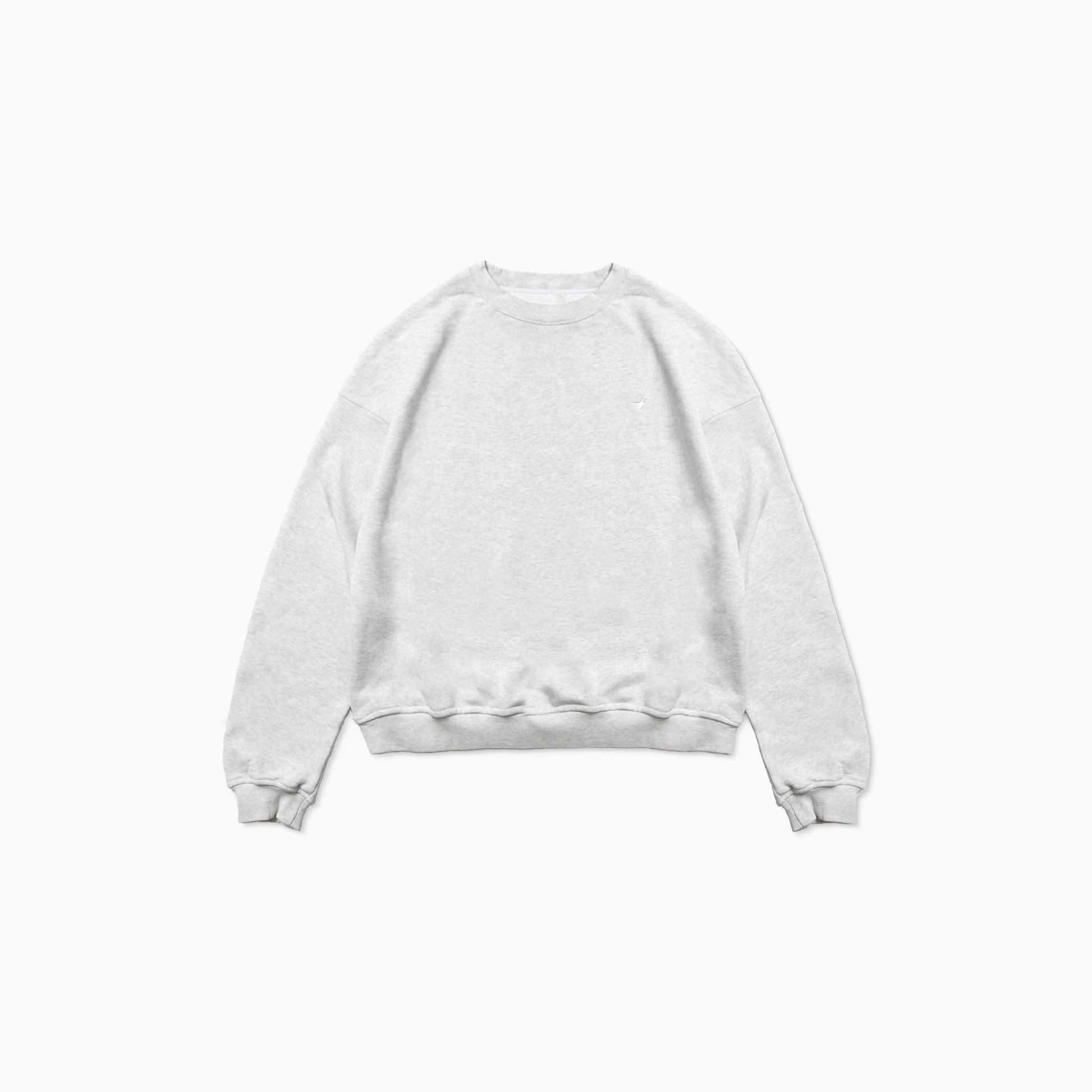 Grey long-sleeved jersey sweater with an oversized fit, made from premium heavyweight cotton. Ribbed crew neck.