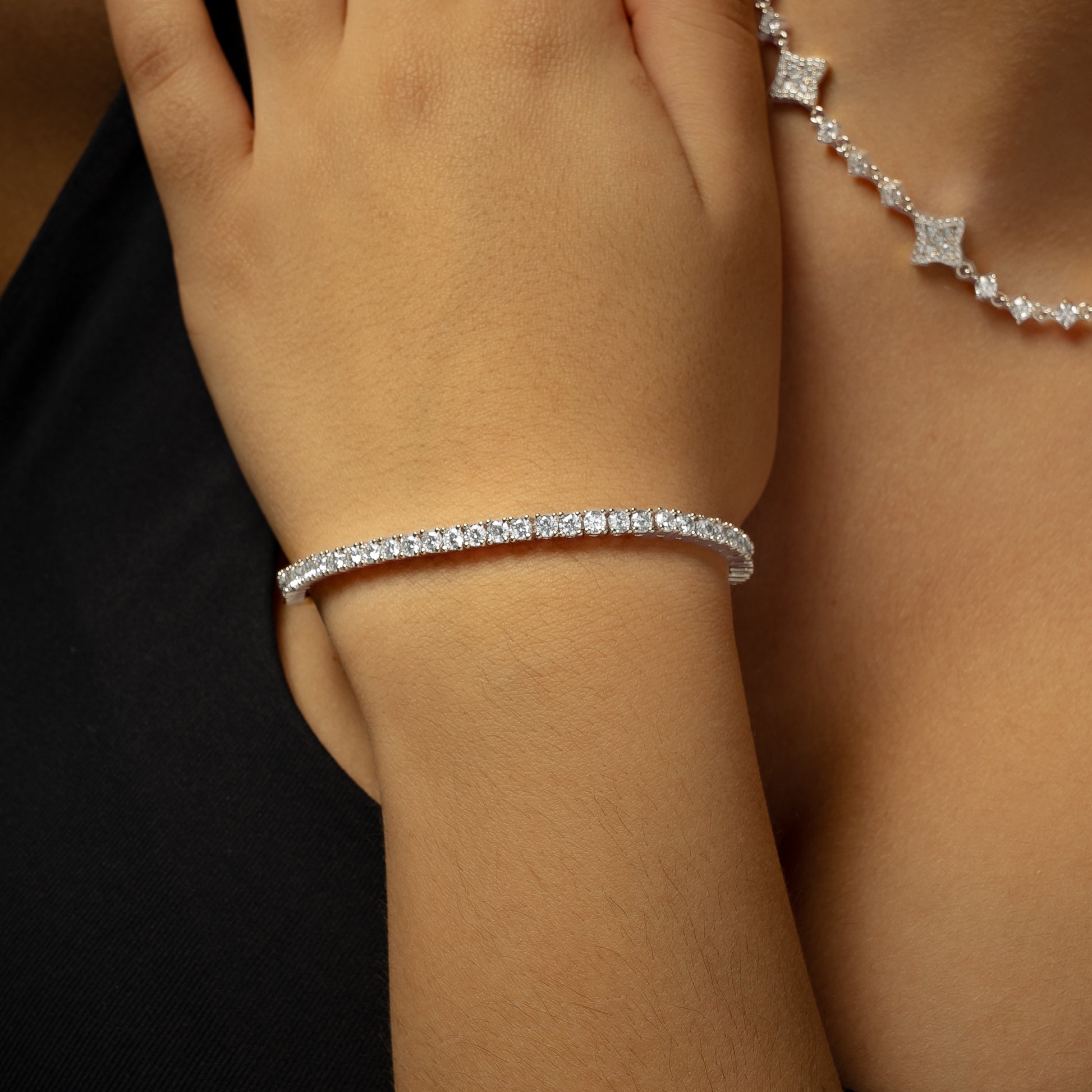 Discover our 3mm Tennis Bracelet , an iconic piece with masterful brilliance. Each link is set with sparkling zirconium oxides, offering a continuous and sophisticated sparkle. Its 3mm finesse makes it a piece of jewelry that is both discreet and striking, perfect for elegantly enhancing all your outfits.