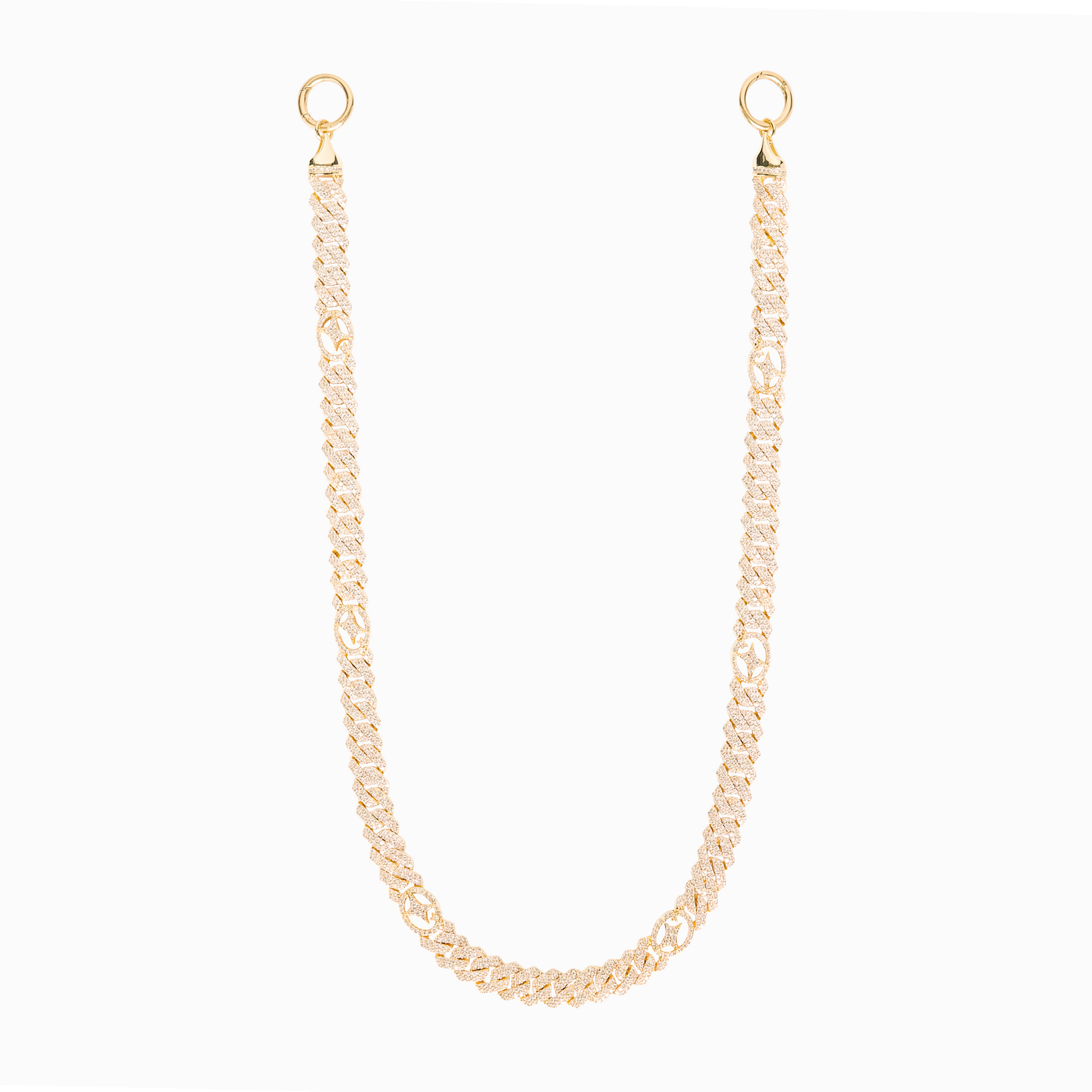 Discover our 10 mm Prong Link Wallet Chain, a striking and sophisticated piece that fully embodies Make it Shine's DNA. Its unique design combines prong links fully set with sparkling zirconia with subtly integrated Make it Shine logos. An incomparable sparkle and a strong signature for a piece of jewelry that won't go unnoticed.